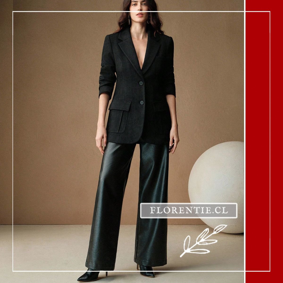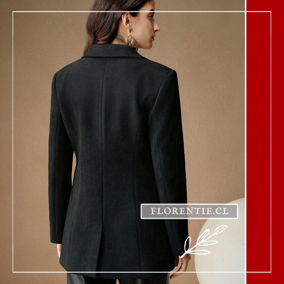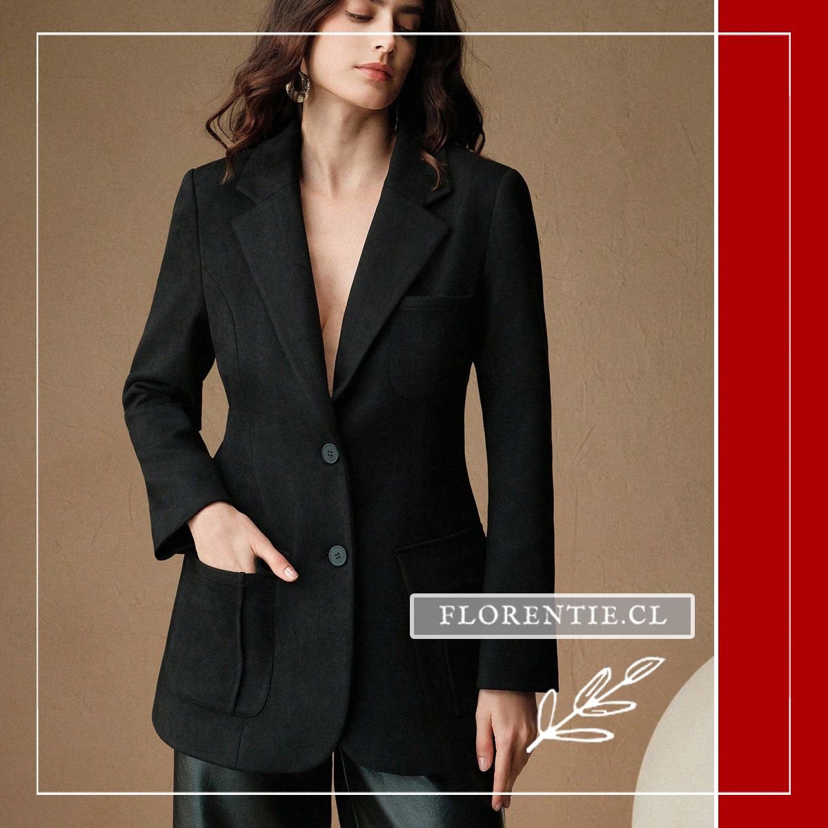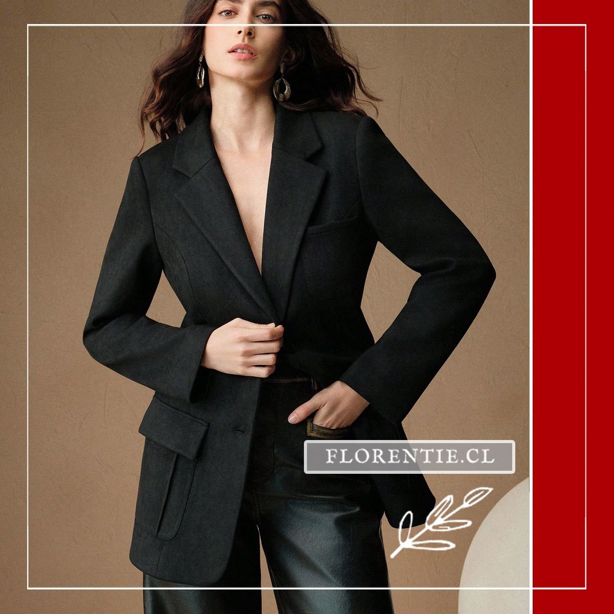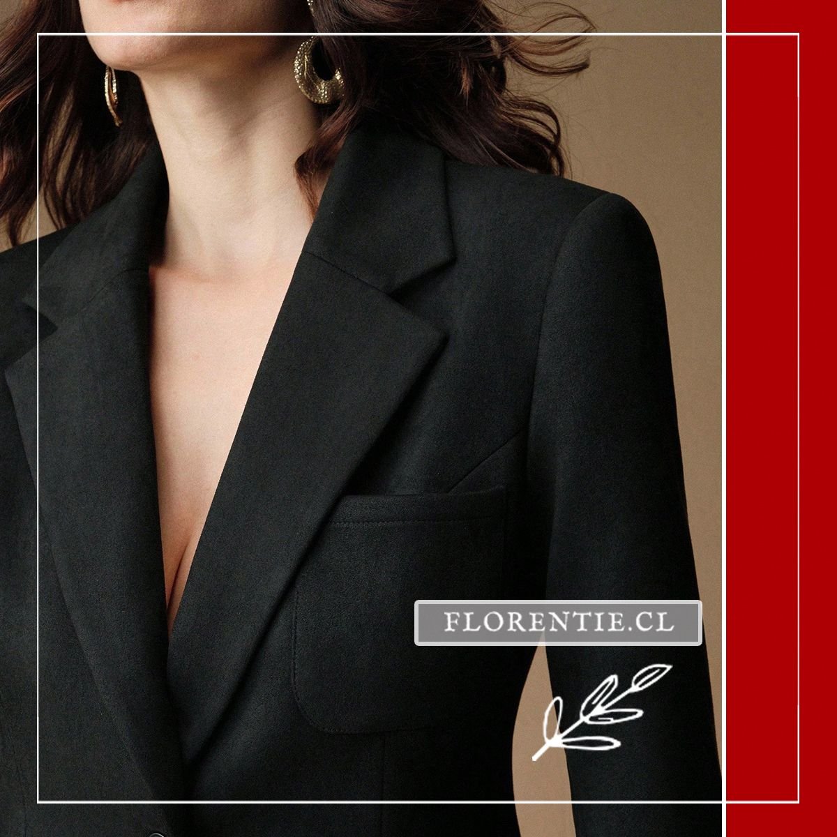 Solapas Clásicas: El cuello con solapa de muesca aporta ese toque de “power dressing” que convierte un look básico en uno profesional.