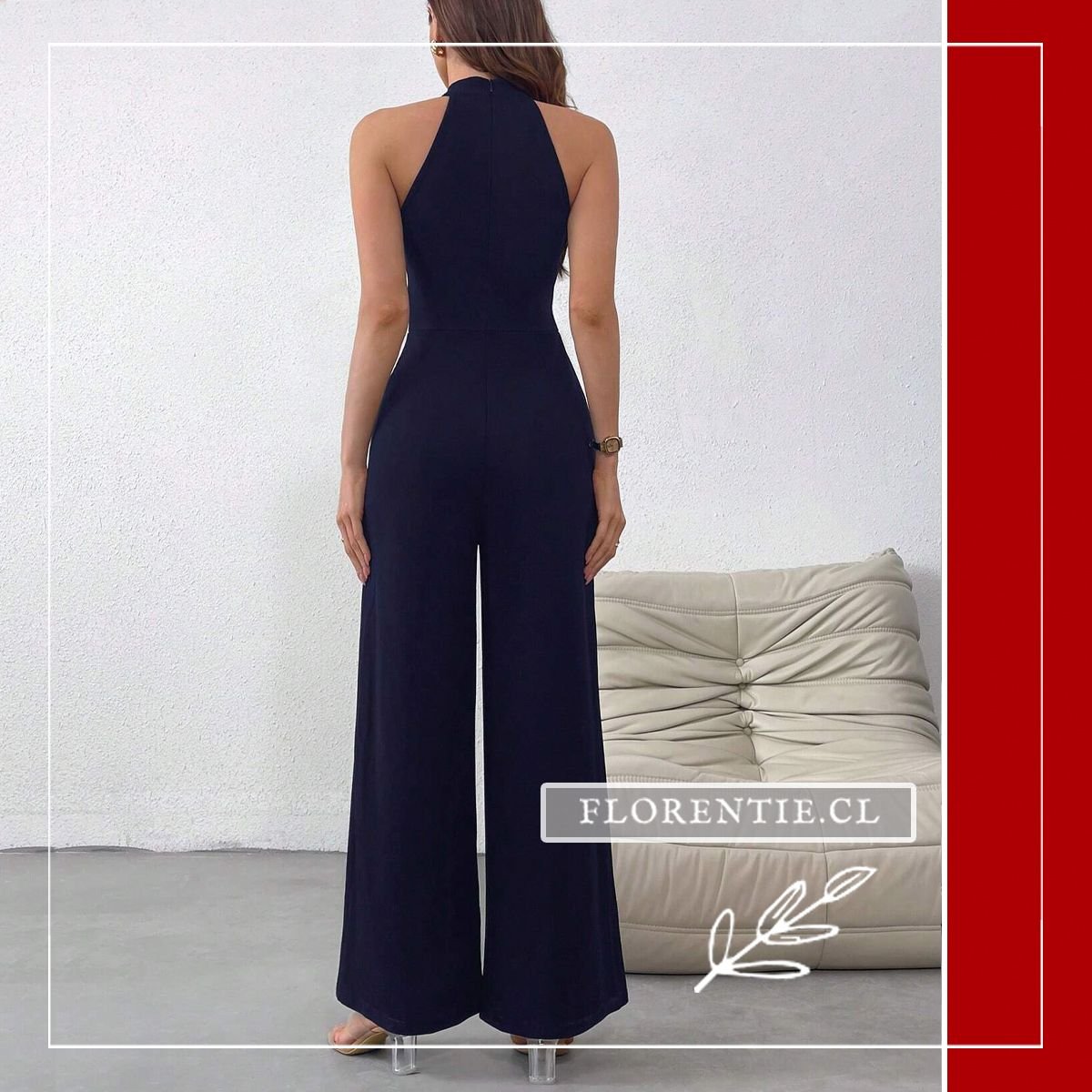 Enterito azul marino: diseño halter con pantalón palazzo y corte gota en escote. Este modelo elegante combina sofisticación y comodidad con su ajuste en cintura que realza la figura sin resultar restrictivo. El pantalón de pierna ancha permite movimiento total, ideal para eventos prolongados. Perfecto para cócteles, cenas formales, bodas y eventos semi-formales. El detalle de corte gota en el pecho añade un toque de originalidad controlada. La tela de fluidez media garantiza elegancia en movimiento. Combina con accesorios plateados o dorados según la ocasión.