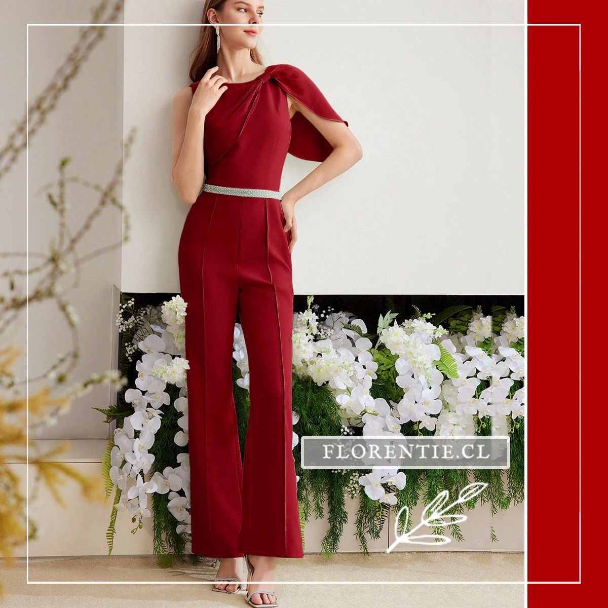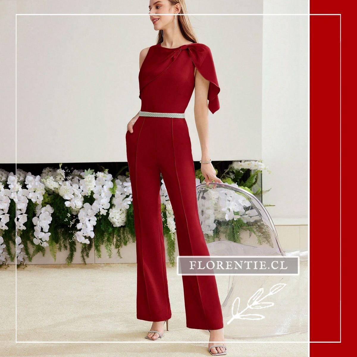 Enterito largo: elegancia sofisticada y diseño contemporáneo se unen en este jumpsuit rojo vino para tus eventos especiales. Su escote redondo con drapeado asimétrico en un hombro crea un impacto visual único, mientras el cinturón delgado con detalles de pedrería define tu silueta. El pantalón palazzo de corte recto con bolsillos laterales ofrece comodidad y líneas alargadas. Ideal para bodas, cócteles formales, cenas de gala o celebraciones elegantes, esta pieza en tela satinada garantiza un look refinado y moderno, perfecto para destacar con estilo y confianza en ocasiones memorables.