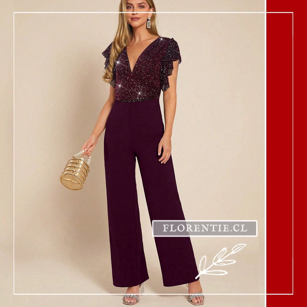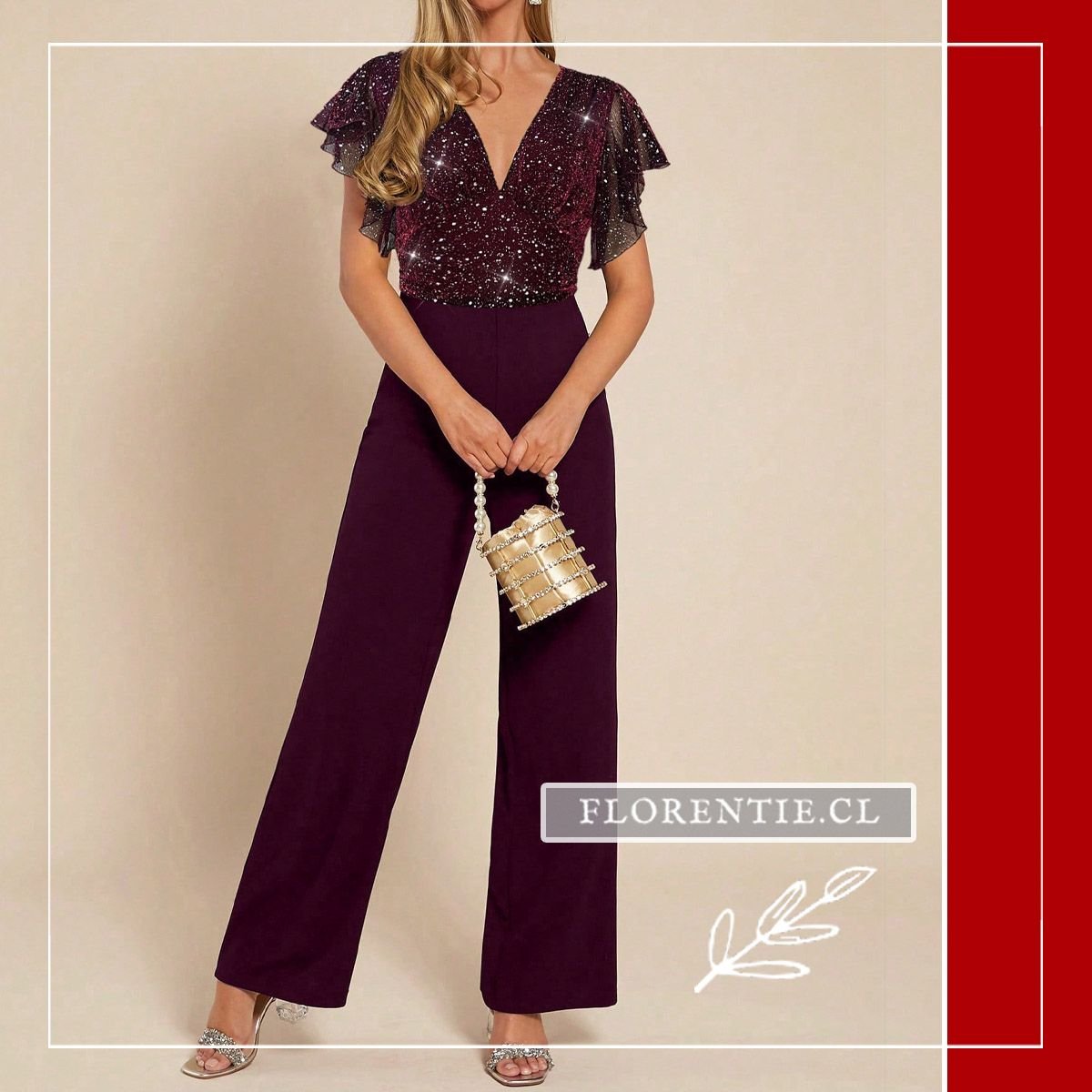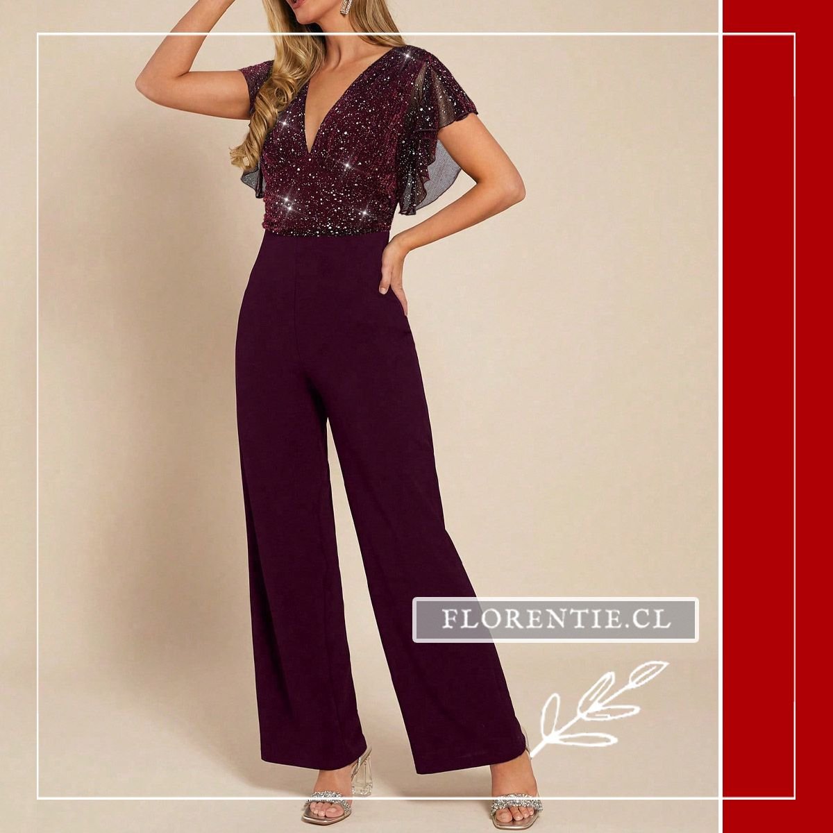 Enterito de manga corta diseñado para destacar con elegancia y comodidades tu aliado perfecto. Su escote en V y bodice con lentejuelas brillantes contrastan con el pantalón palazzo de caída fluida, creando un conjunto sofisticado y versátil. Ideal para bodas, cócteles, cenas formales o cualquier evento que requiera un look impecable y moderno. Su combinación de feminidad y diseño estructurado garantiza que te sentirás segura y a la moda en cada ocasión especial.