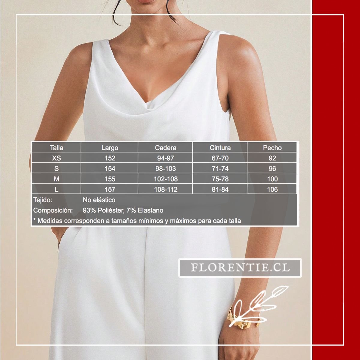 Enterito palazzo blanco: diseño con escote en V frontal y trasero, y pantalón de pierna ancha. Este modelo elegante combina sofisticación y comodidad con su corte drapeado en el torso que ofrece un ajuste relajado sin perder forma. Los tirantes anchos proporcionan soporte seguro, ideal para eventos prolongados. Perfecto para bodas, cócteles, eventos de verano y ocasiones semi-formales. La tela fluida y ligera garantiza frescura y movimiento natural. La cremallera trasera asegura un ajuste preciso. Combina con accesorios dorados o de colores vibrantes para contrastar.
