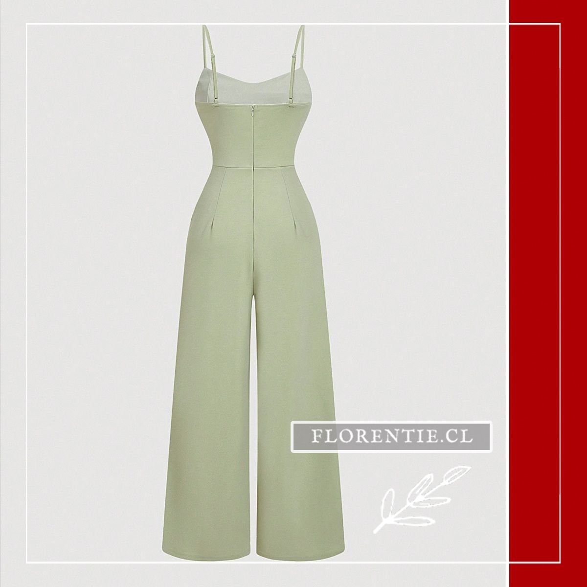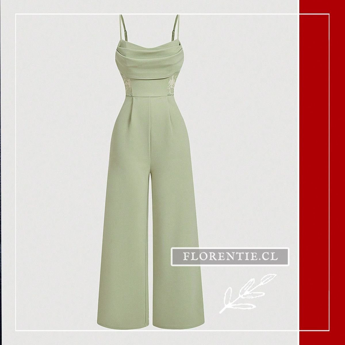 Enterito verde agua: elegancia y feminidad se combinan en este jumpsuit de tono refrescante, ideal para eventos especiales. Su diseño con tirantes ajustables y escote cowl neck crea un efecto drapeado, mientras el panel de encaje floral en la cintura añade un detalle romántico. Los pantalones palazzo de pierna ancha ofrecen una silueta alargada y fluida. Perfecto para bodas, cócteles formales, cenas de gala o eventos estivales, esta pieza en tejido de caída suave garantiza comodidad y sofisticación para ocasiones que requieren un look refinado y memorable.