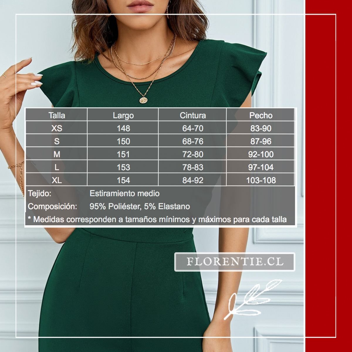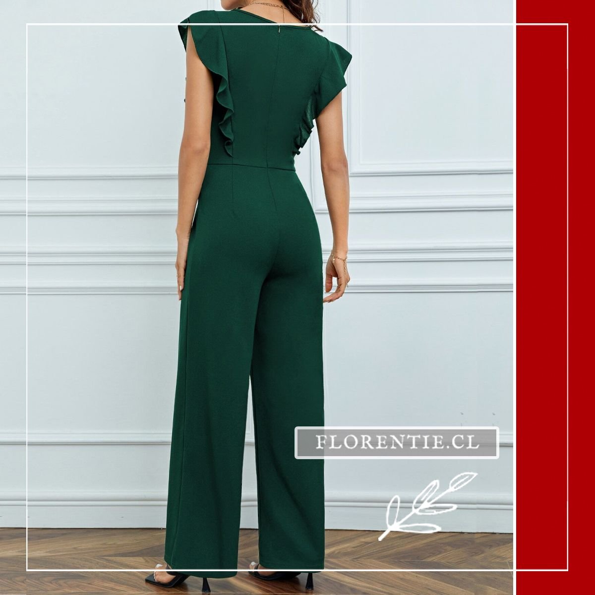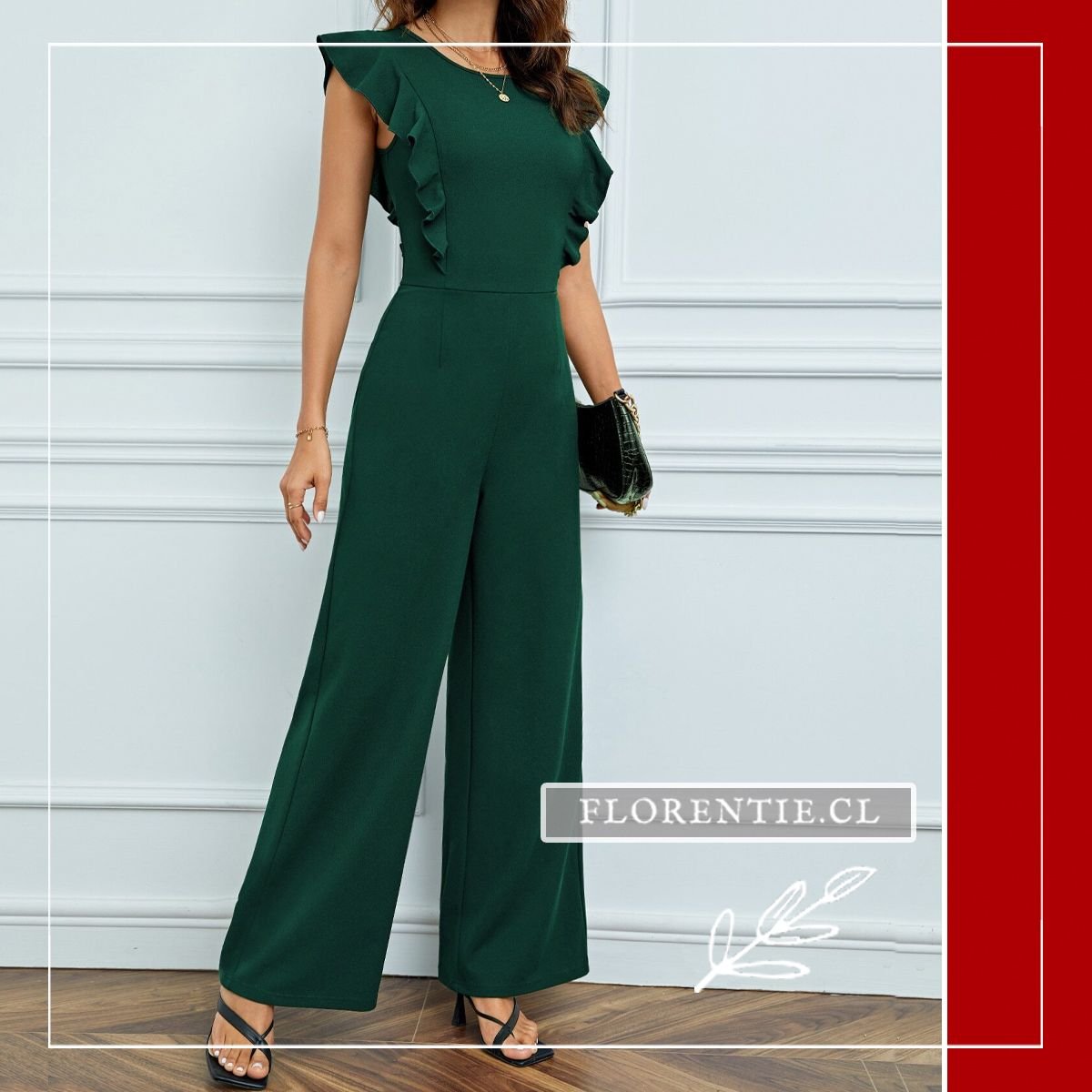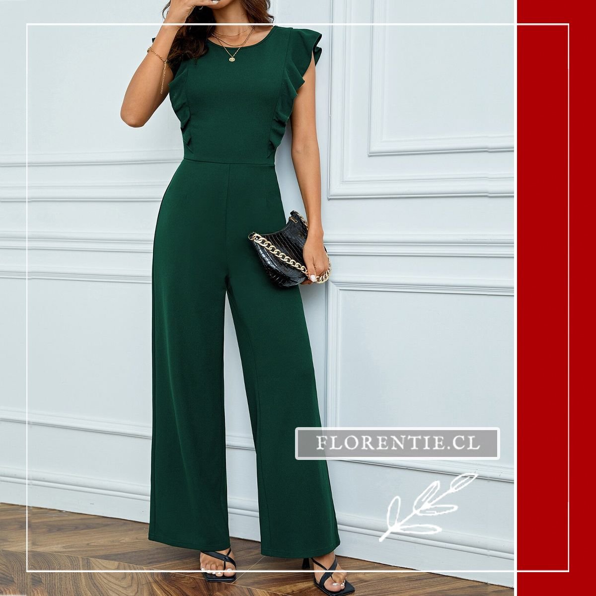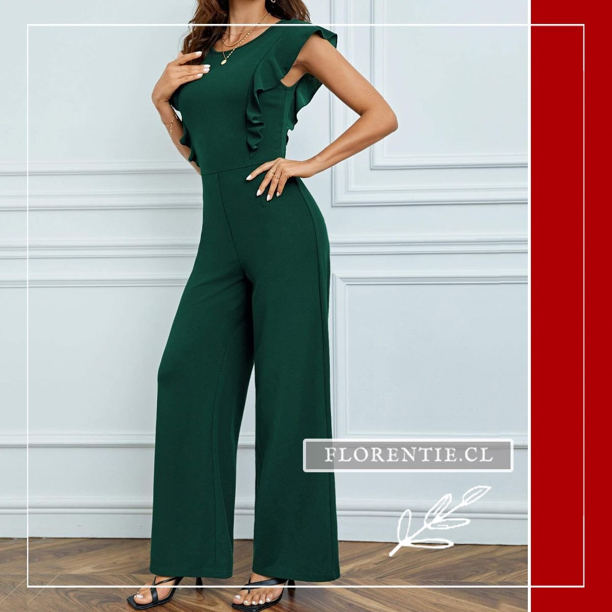 Enterito verde esmeralda: diseño con mangas cortas de volantes y pantalón palazzo de talle alto. Este modelo combina elegancia y comodidad con su escote redondo clásico que favorece diferentes tipos de cuerpo. Los volantes en los hombros añaden un toque femenino sin excesos. Perfecto para eventos de trabajo, cócteles, bodas y ocasiones semi-formales. La cintura marcada y el talle alto estilizan la figura de forma natural. La tela de caída recta garantiza elegancia al caminar. Combina con accesorios dorados o nude para realzar su tono esmeralda.
