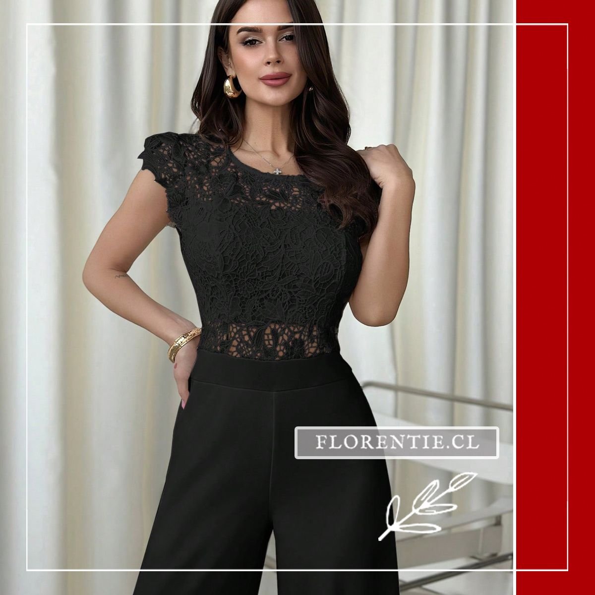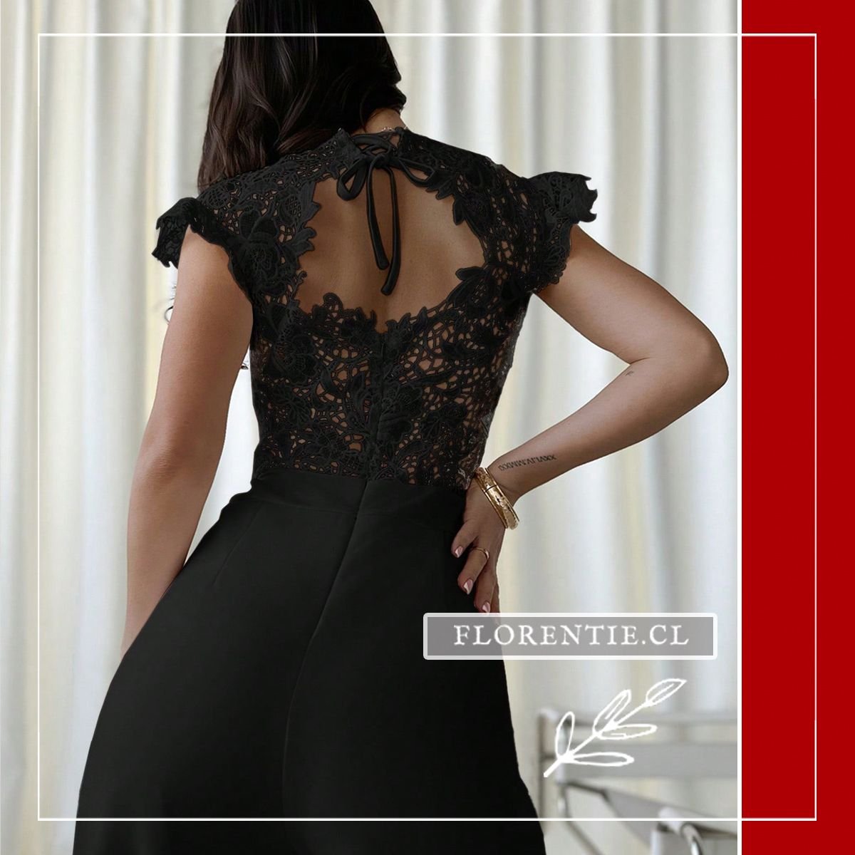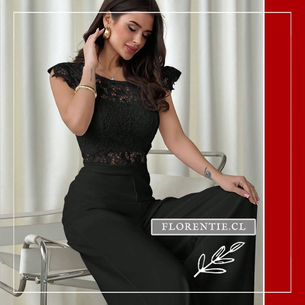 Enterito Widow: combina la elegancia atemporal del encaje con la comodidad moderna en este sofisticado jumpsuit negro para ocasiones especiales. Su parte superior de encaje floral con mangas capelina y espalda de escote pronunciado ofrece un detalle romántico, mientras el pantalón palazzo de cintura alta estiliza tu figura con su caída fluida. Ideal para cócteles elegantes, bodas, cenas formales o eventos de etiqueta, esta pieza une texturas contrastantes para un look equilibrado y versátil. Aprovecha sus bolsillos discretos y ajuste personalizable para disfrutar de una elegancia práctica que asegura comodidad sin sacrificar estilo en cualquier celebración memorable.