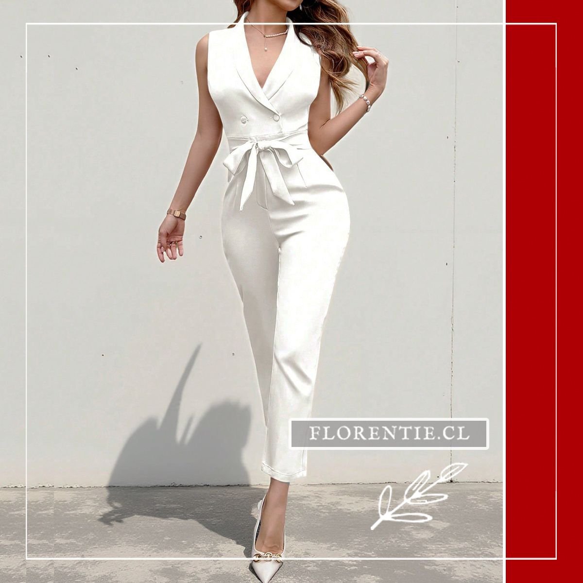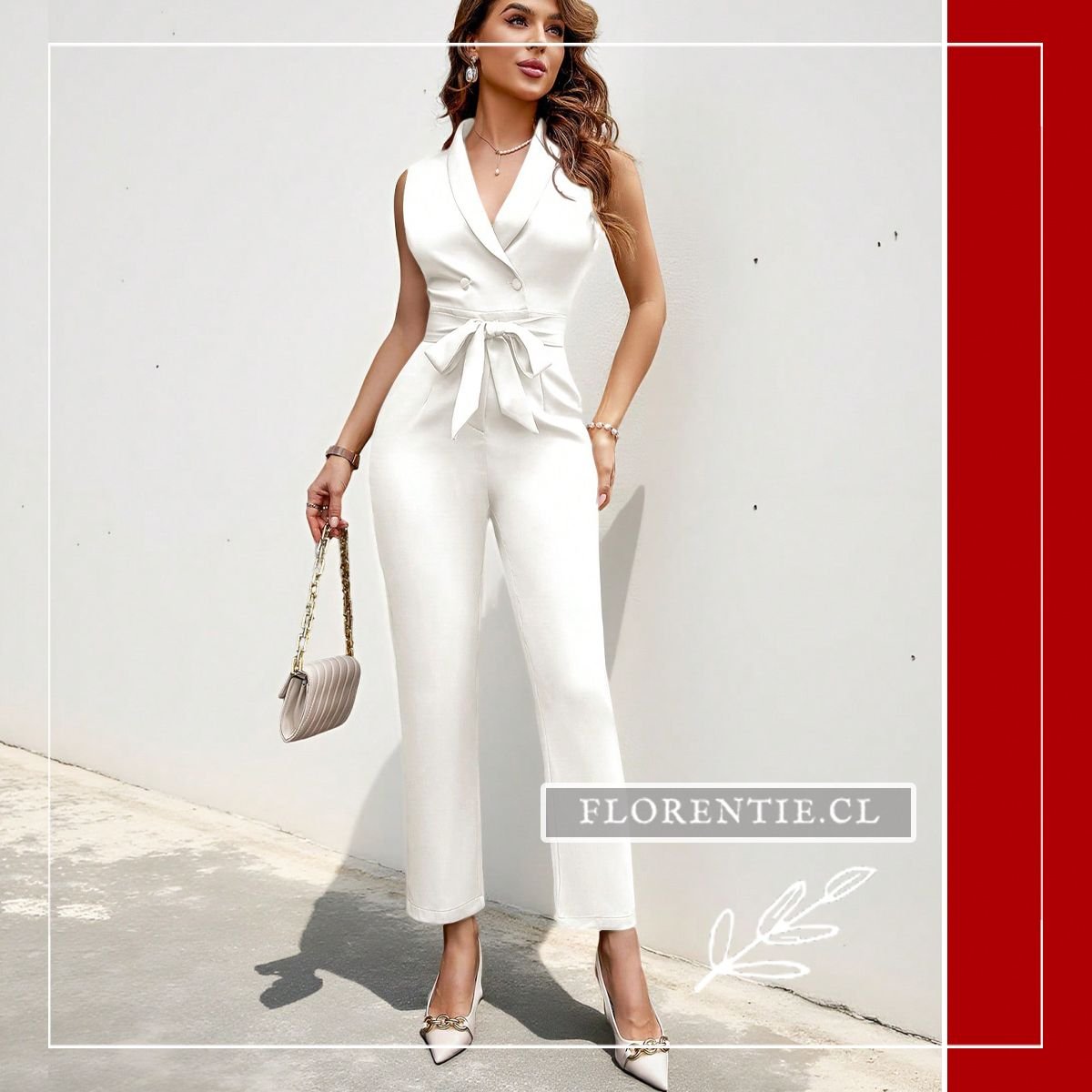 Jumpsuit blanco novia: una alternativa moderna y sofisticada al vestido tradicional para tu día especial u ocasiones formales. Su diseño tipo blazer con escote en V profundo y chaleco sin mangas ofrece un look pulcro, mientras el cinturón ancho define tu silueta con elegancia. Los pantalones de corte recto y caída fluida garantizan comodidad y movimiento sin sacrificar el estilo. Ideal como traje de novia civil, para bodas diurnas, cócteles elegantes o eventos semi-formales. Esta pieza versátil combina la estructura formal con un toque femenino contemporáneo, perfecta para quienes buscan distinción y confianza en momentos memorables.