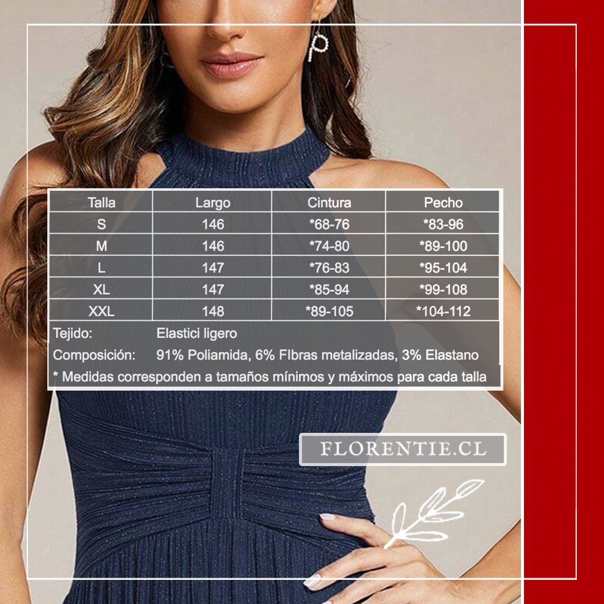 Su cuello alto y el detalle fruncido que irradia desde el escote crean un impacto visual sofisticado. La cintura con bandas cruzadas define tu silueta, mientras la falda larga de corte evasé y plisada ofrece un movimiento fluido y favorecedor. Confeccionado en una tela con brillo sutil, es ideal para bodas, galas, cenas de etiqueta o cualquier celebración que requiera un look impecable y contemporáneo.