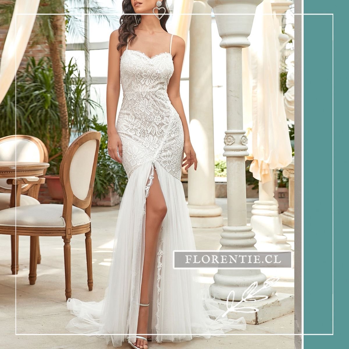 Vestido blanco de estilo sirena: elegancia y sofisticación para tu evento especial. Su diseño realza la figura con un ajuste perfecto.