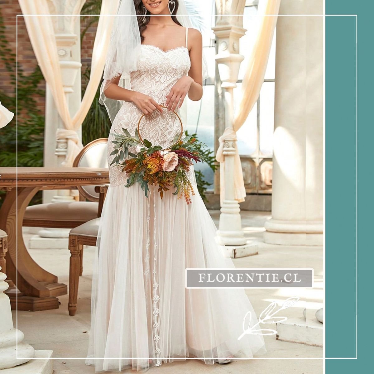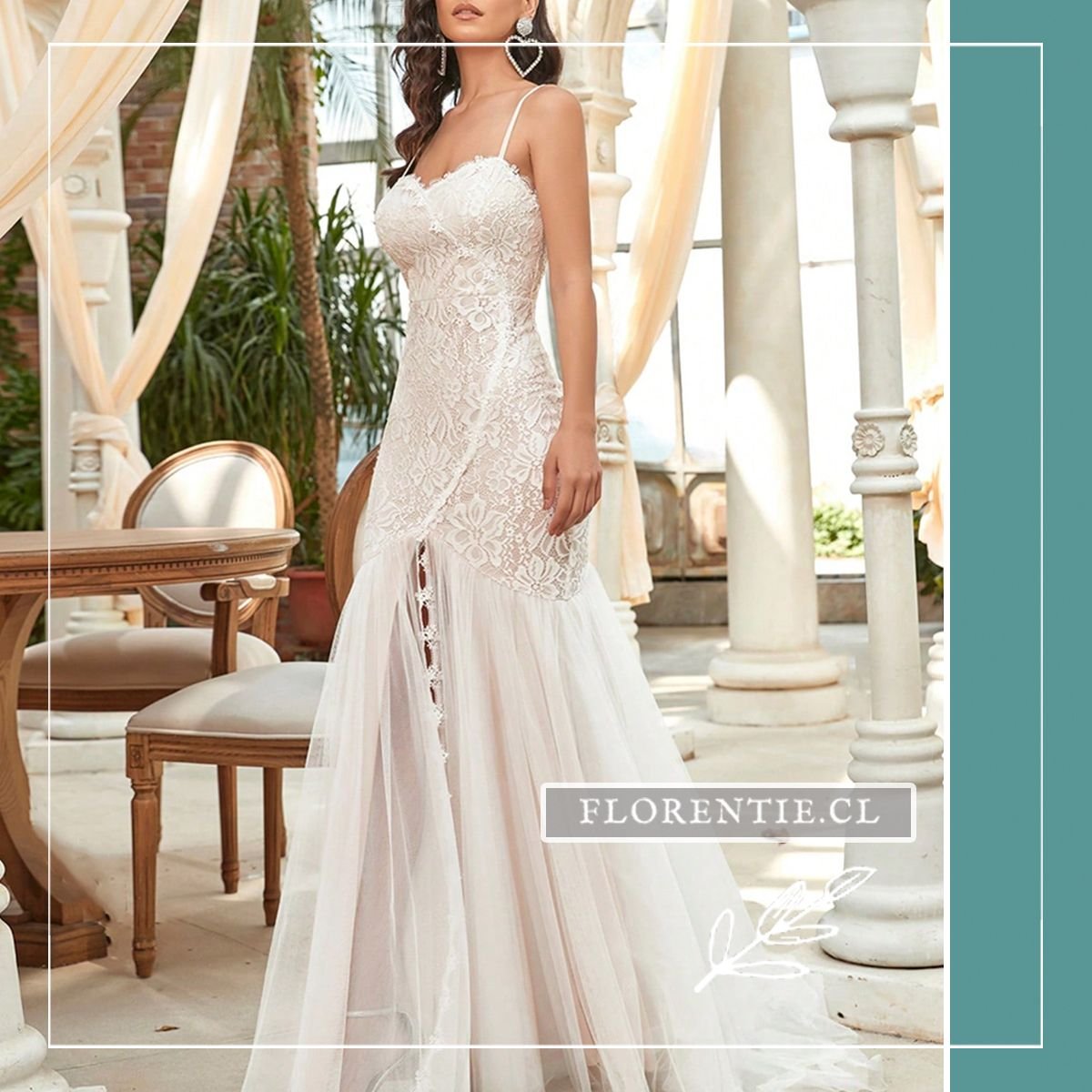 Este vestido luce un escote corazón y un corsé de encaje floral que se extiende hasta las caderas. La falda de tul se abre en campana desde la rodilla, con una elegante abertura frontal y cola fluida. Ideal para bodas formales, ceremonias en la playa, galas de premiación o eventos de etiqueta donde busques un impacto visual memorable. La combinación de estructura y ligereza en este vestido blanco o marfil asegura una presencia radiante y llena de glamour en cualquier celebración importante.