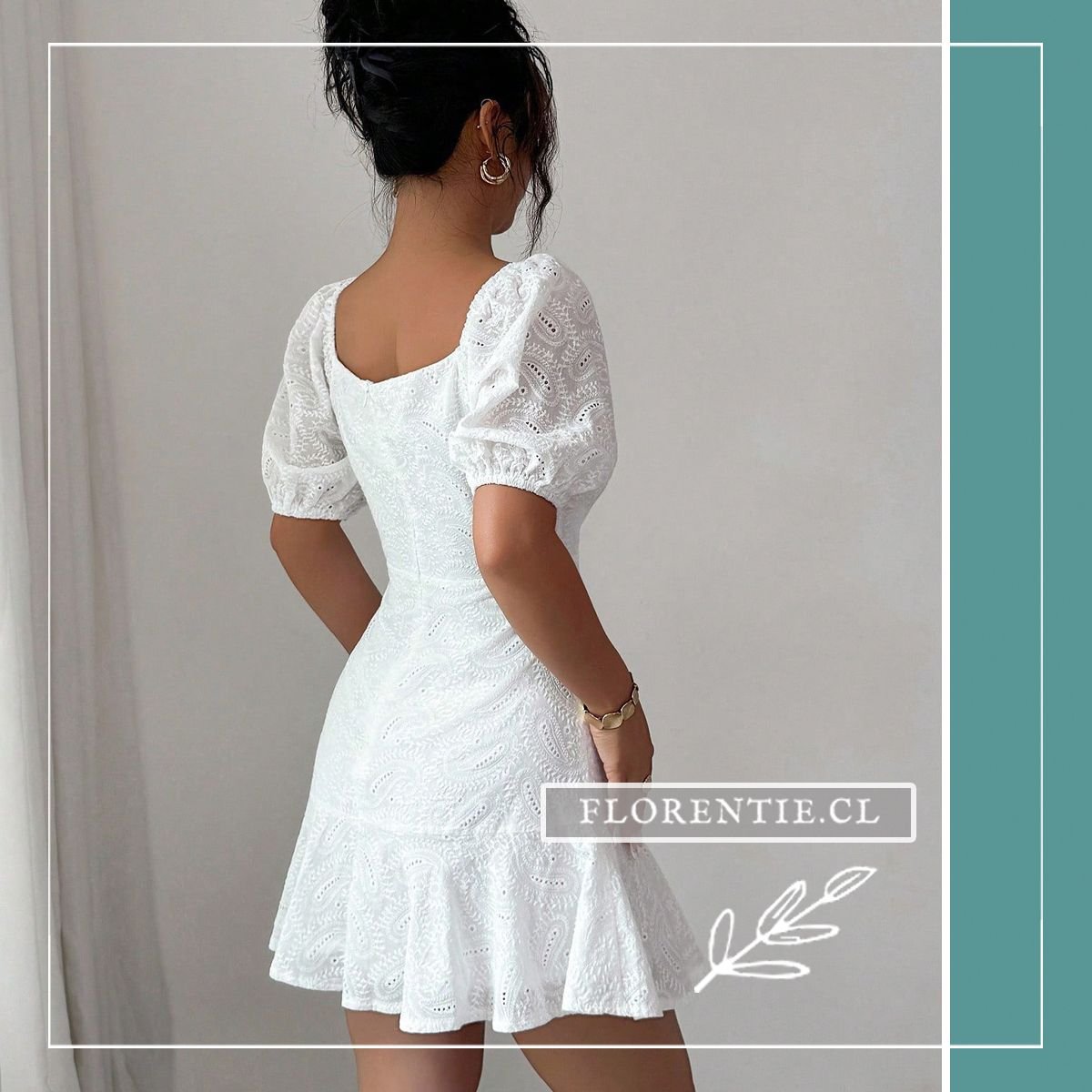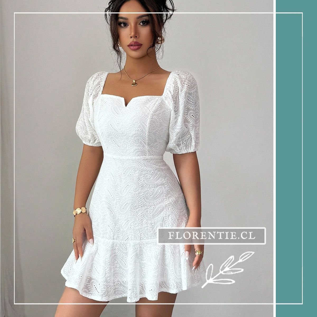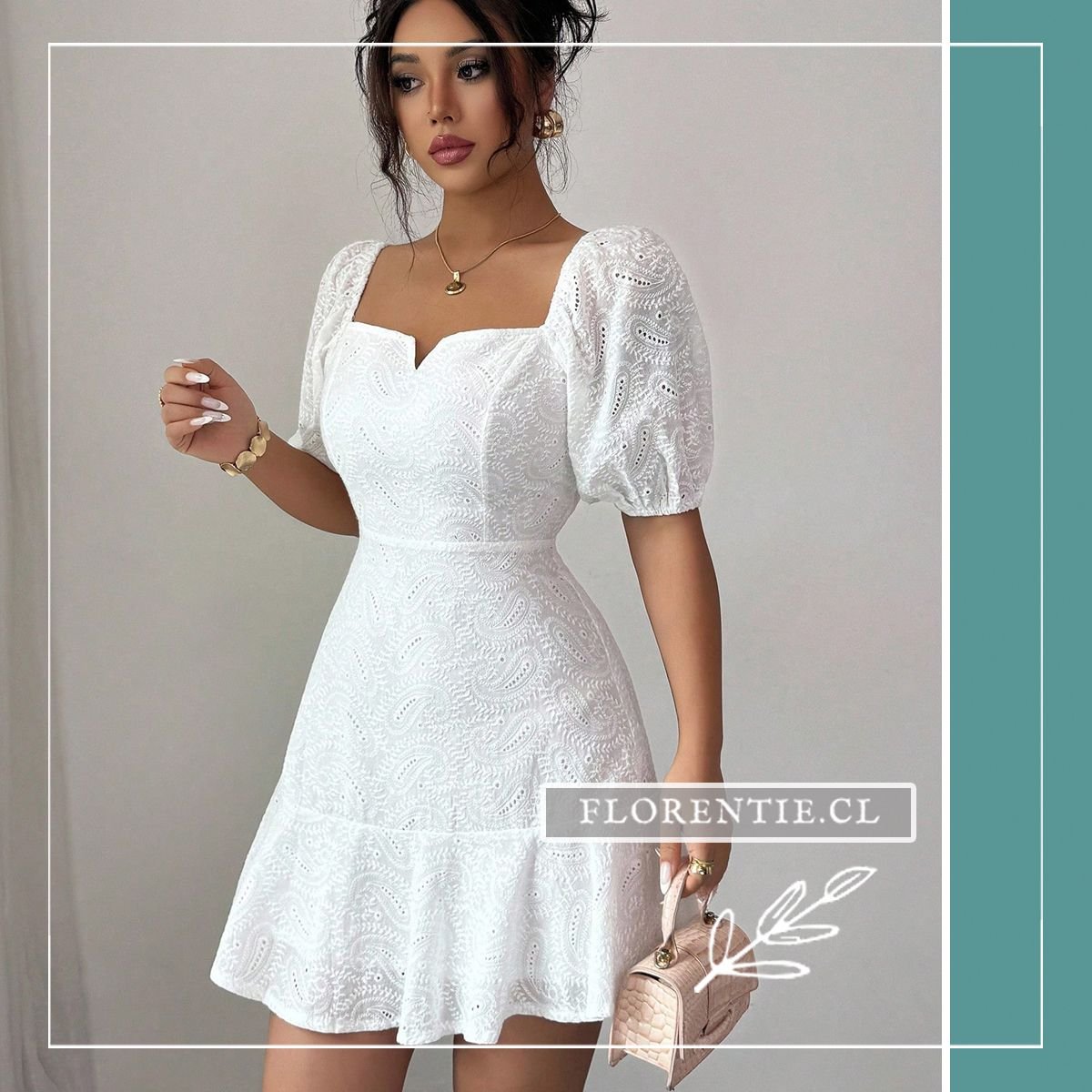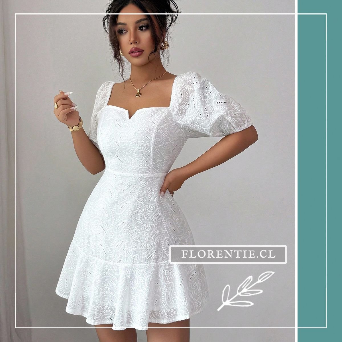 Vestido blanco corto: elegancia y estilo juvenil para tu ocasión especial. Su diseño mini y mangas abullonadas crean un look fresco y femenino.