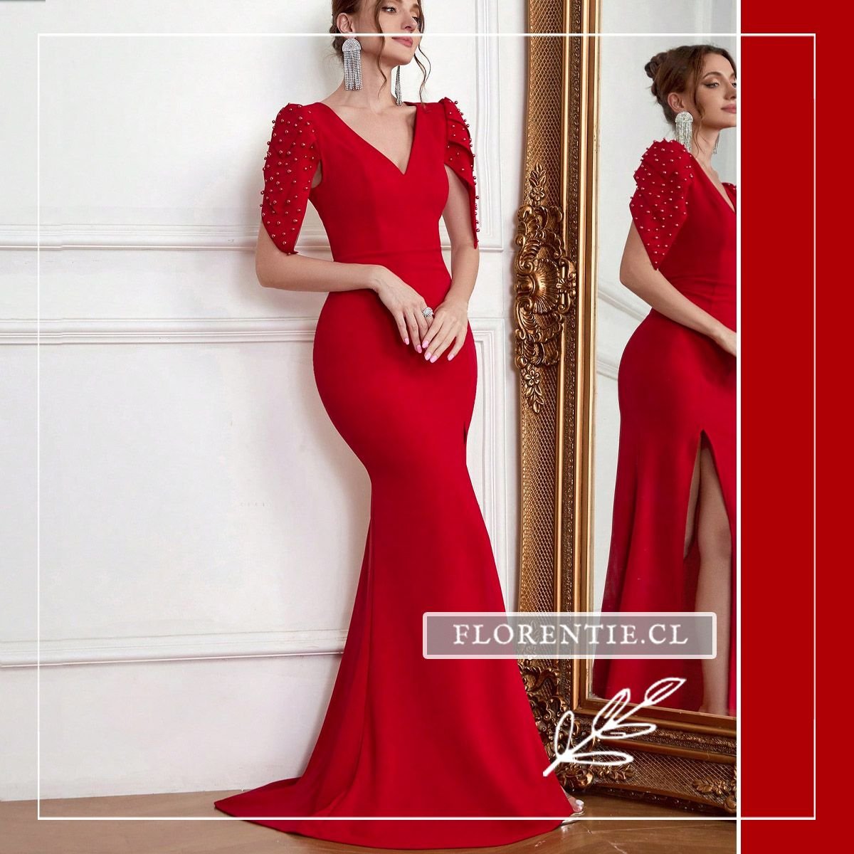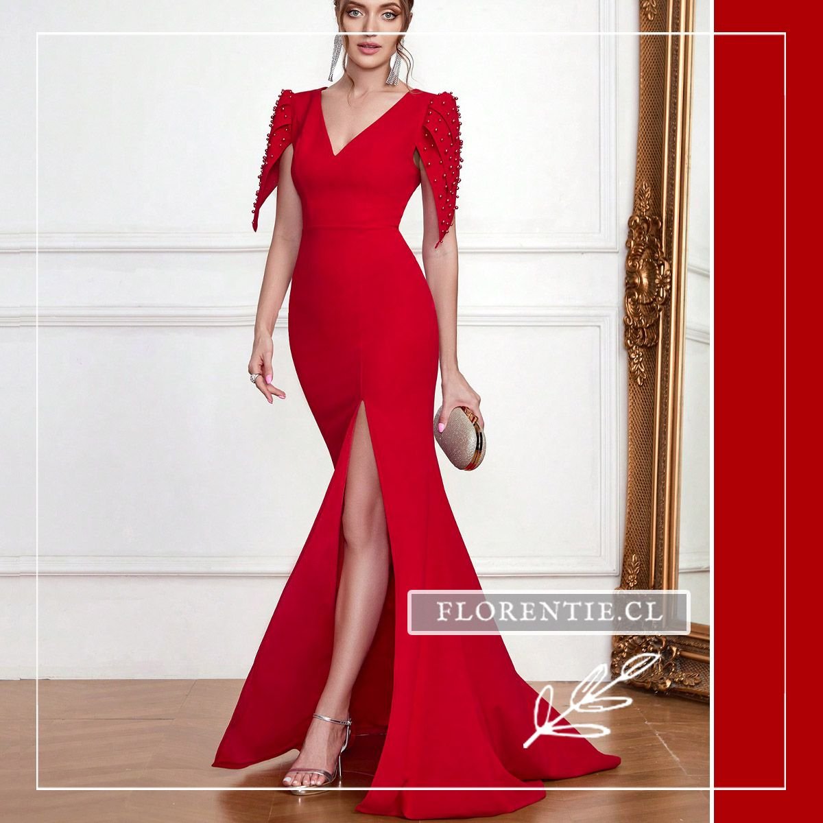 Marca presencia con el Vestido Christianne, un diseño sirena en rojo intenso que define tu silueta con gran elegancia. Su escote en V y la espalda con recorte en rombo ofrecen detalles sensuales y modernos. Las mangas tipo capa, adornadas con pedrería dorada o plateada, aportan un brillo sofisticado y focalizado. Este vestido, confeccionado en una tela noble de caída fluida, incluye una abertura frontal en la falda que facilita el movimiento sin perder formalidad. Es la elección ideal para eventos de alta etiqueta, como galas benéficas, cenas de gala o bodas formales donde destacar con seguridad y estilo es primordial.