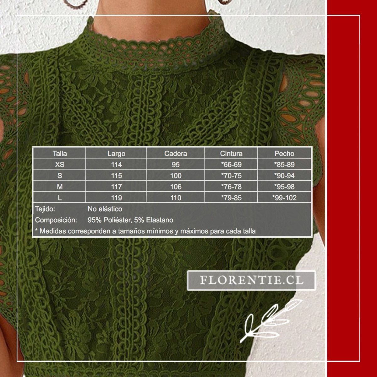 | Talla | Largo | Cadera | Cintura | Pecho |
