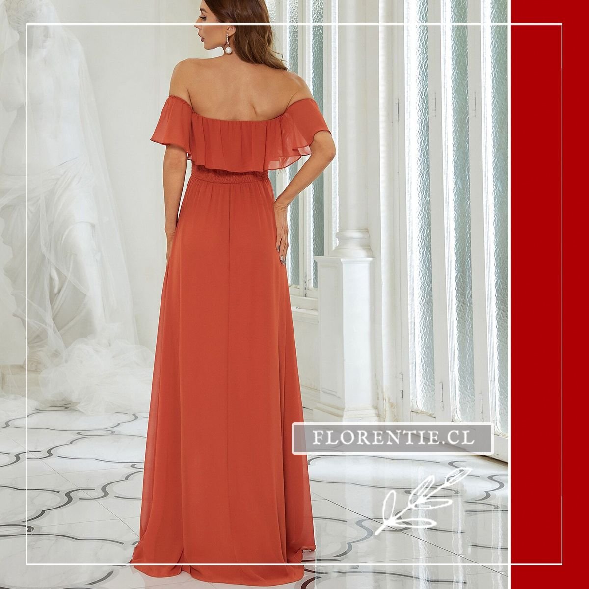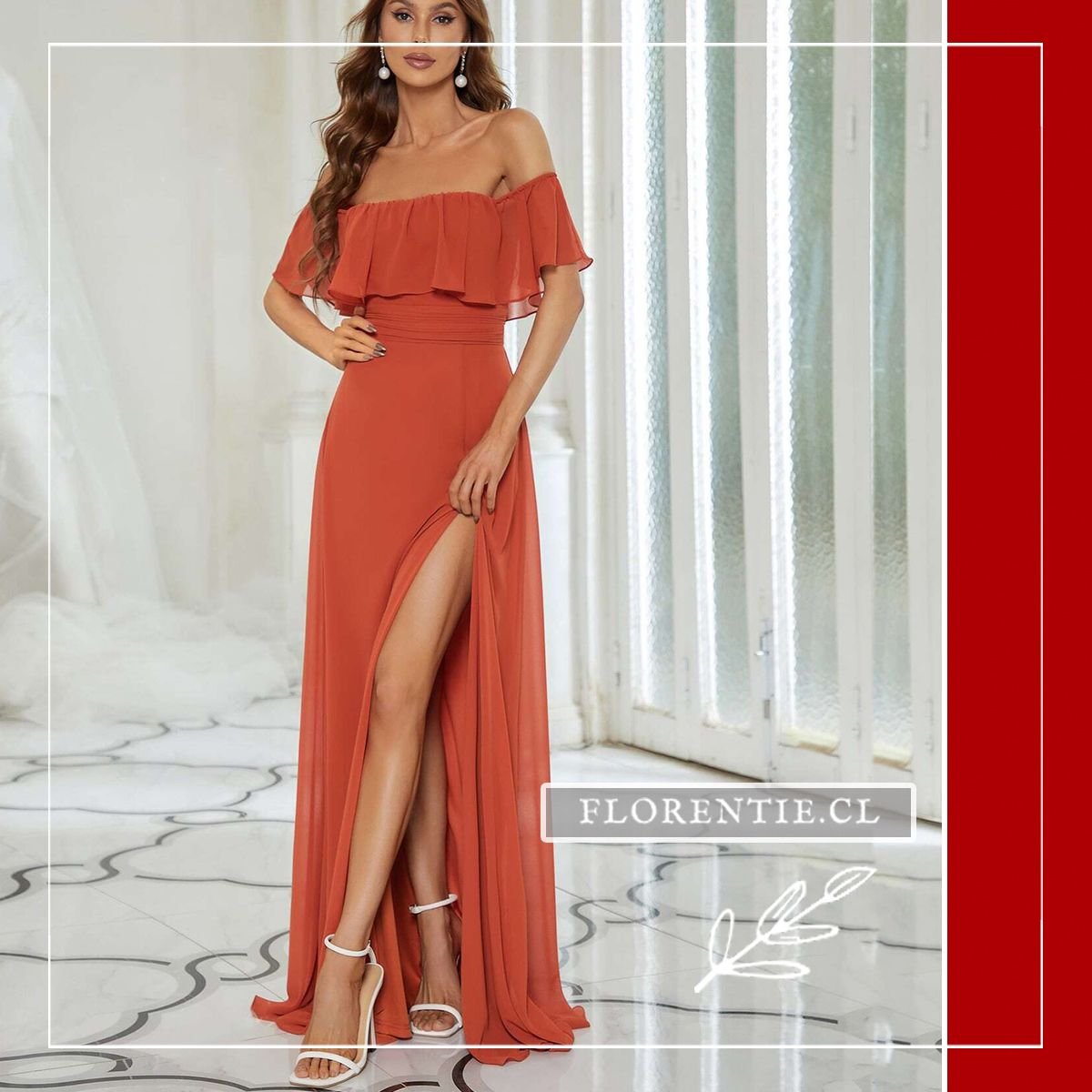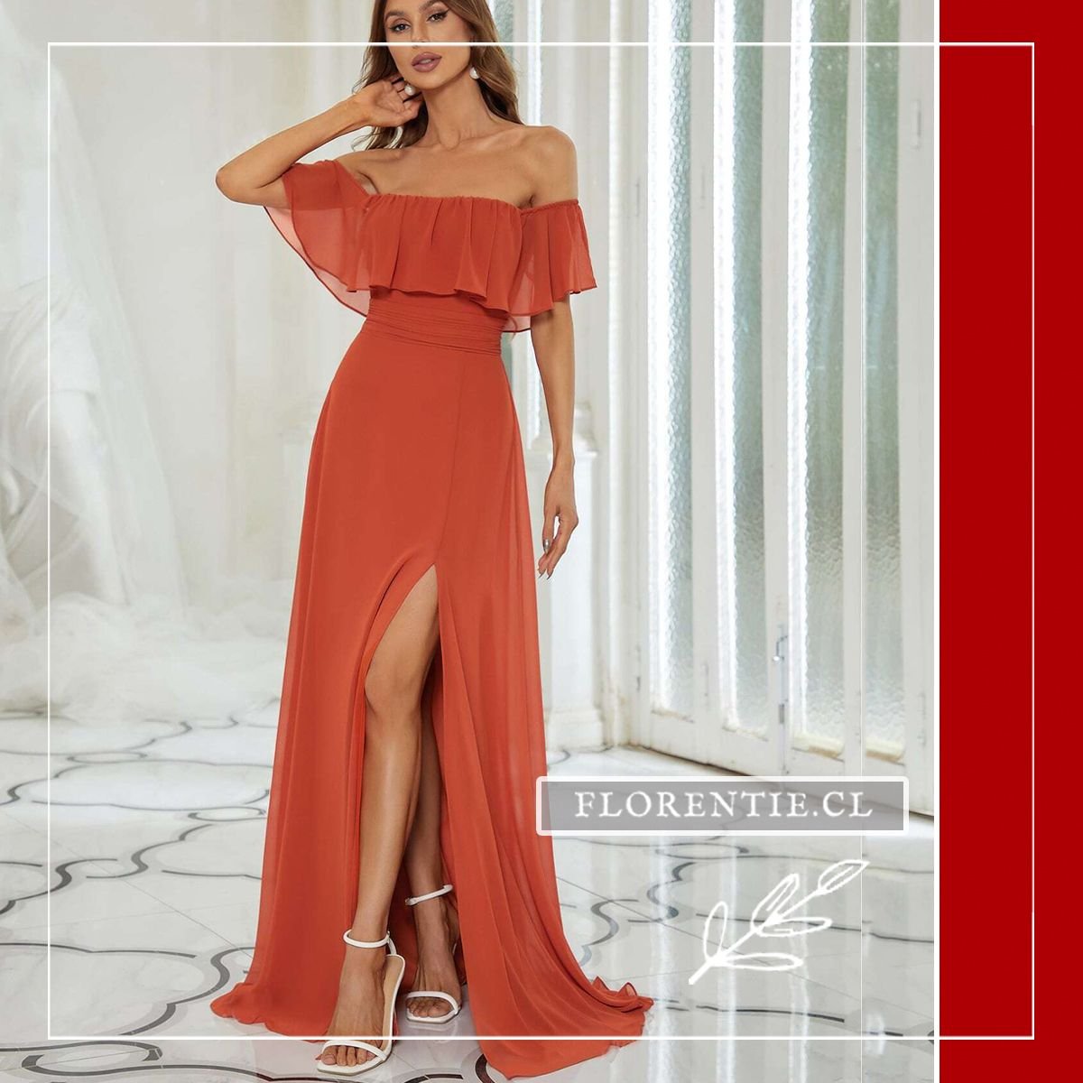 Vestido fiesta naranja: elegancia y estilo se unen en este diseño ideal para ocasiones especiales. Su escote fuera del hombro con volante y la cintura fruncida definen tu silueta con sofisticación. La falda larga de caída fluida, con su abertura lateral, aporta comodidad y un movimiento muy favorecedor. Confeccionado en un tono naranja coral vibrante, es perfecto para bodas, cócteles de verano, galas benéficas o cenas de gala. Consigue un look romántico y a la vez moderno que no pasará desapercibido.
