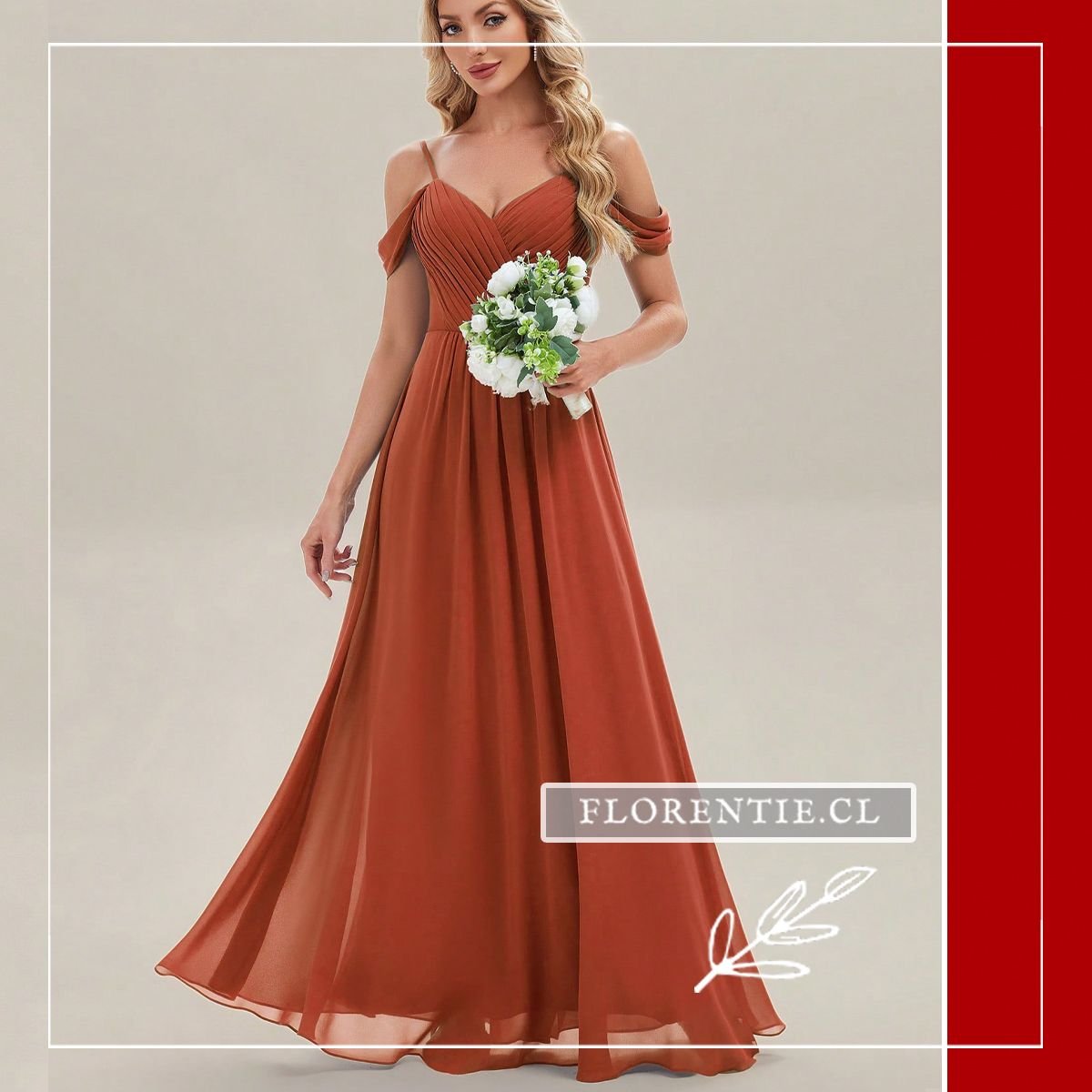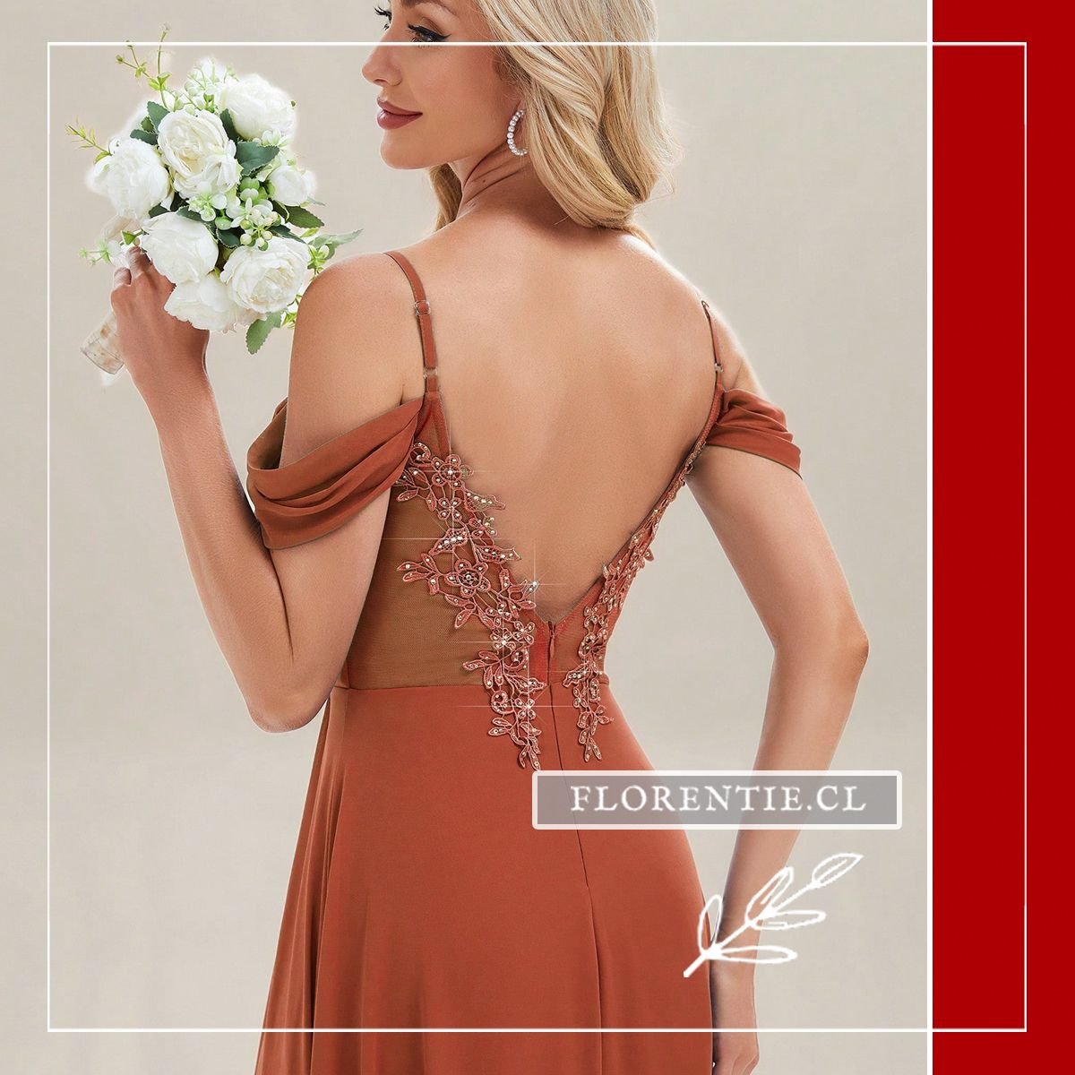 Terracota (Ladrillo/Óxido): Un “nuevo neutro” vibrante que favorece a una amplia gama de pieles, aportando un brillo saludable inmediato. Es la elección ideal para bodas de estilo bohemio, campestre o al atardecer, donde armoniza espectacularmente con la luz dorada (“Golden Hour”).