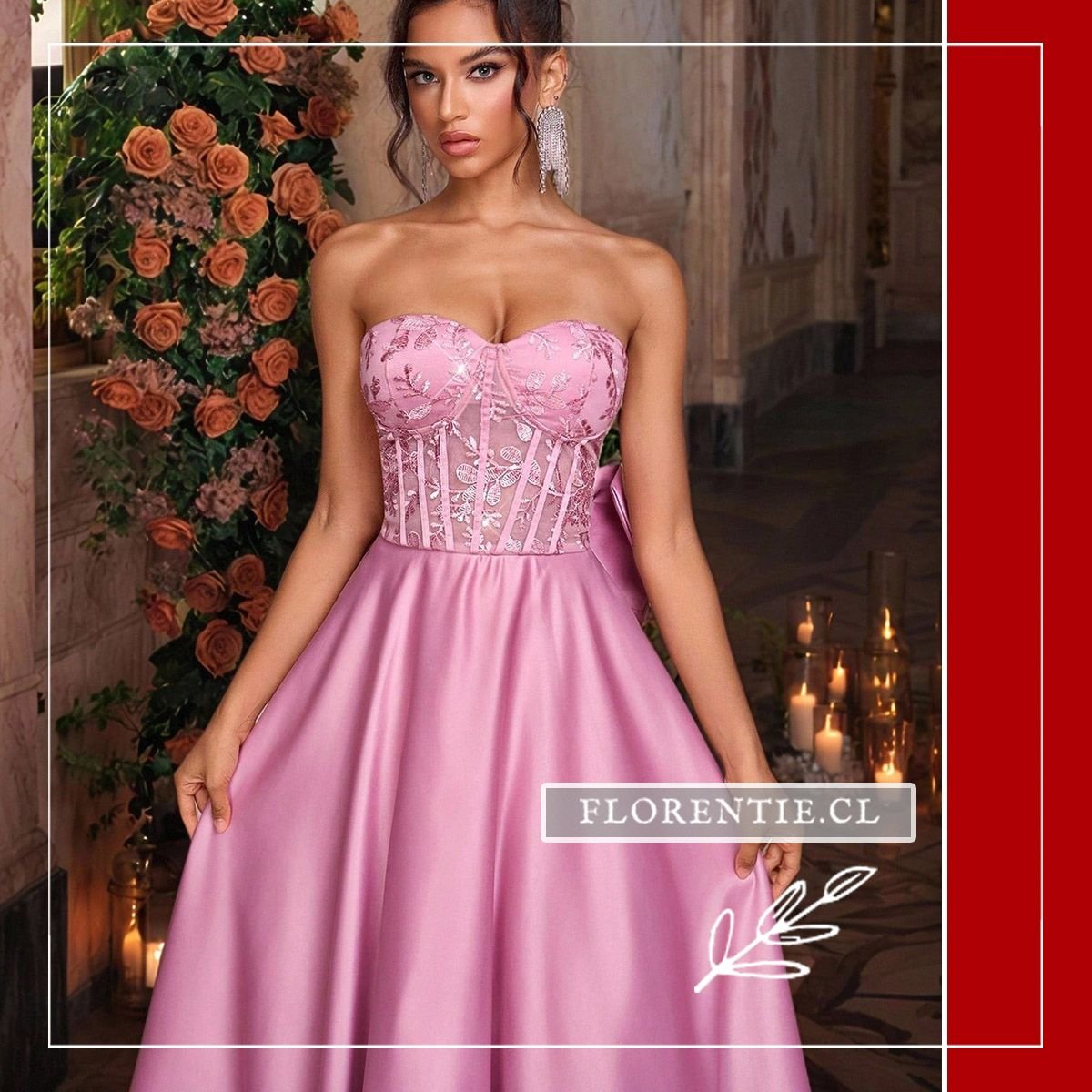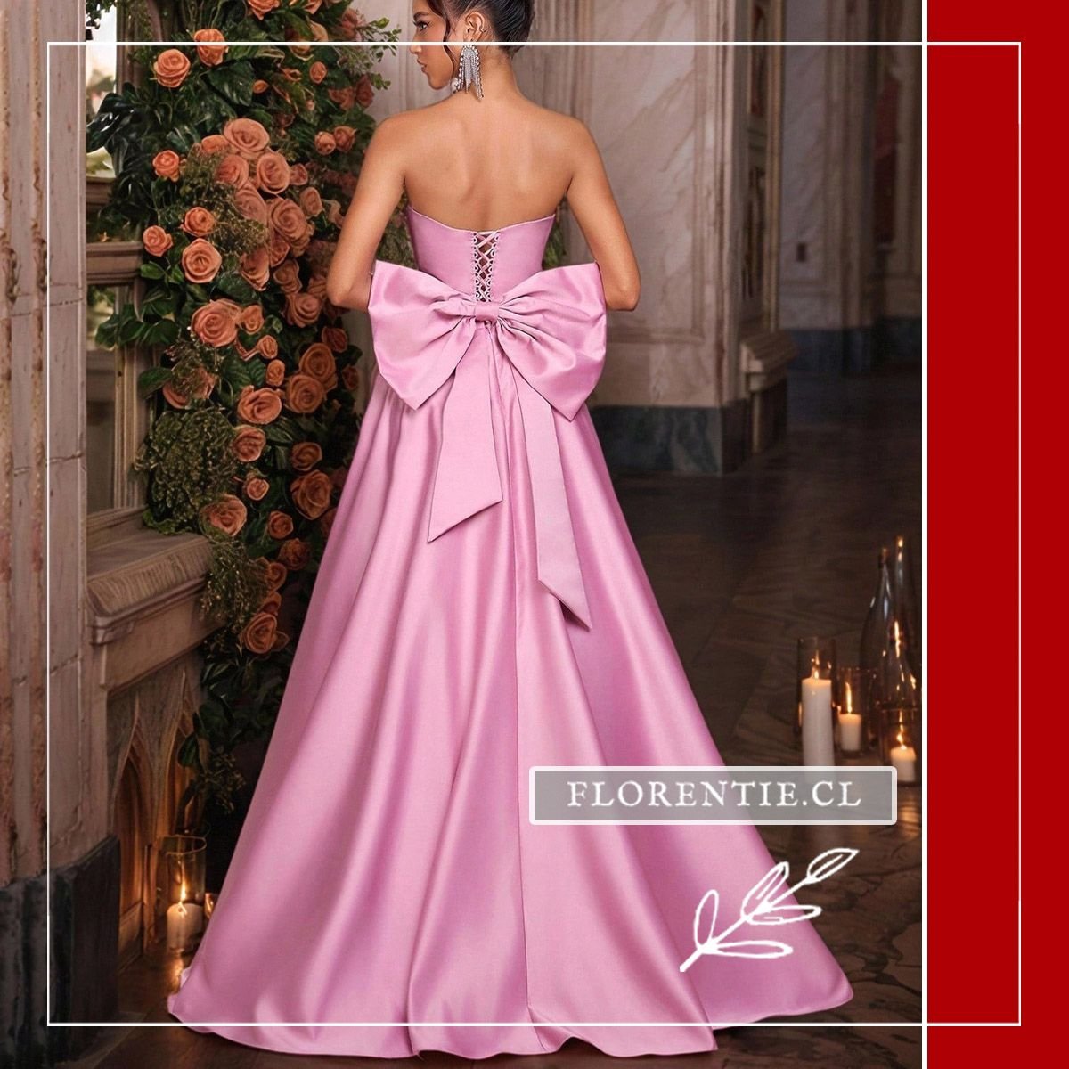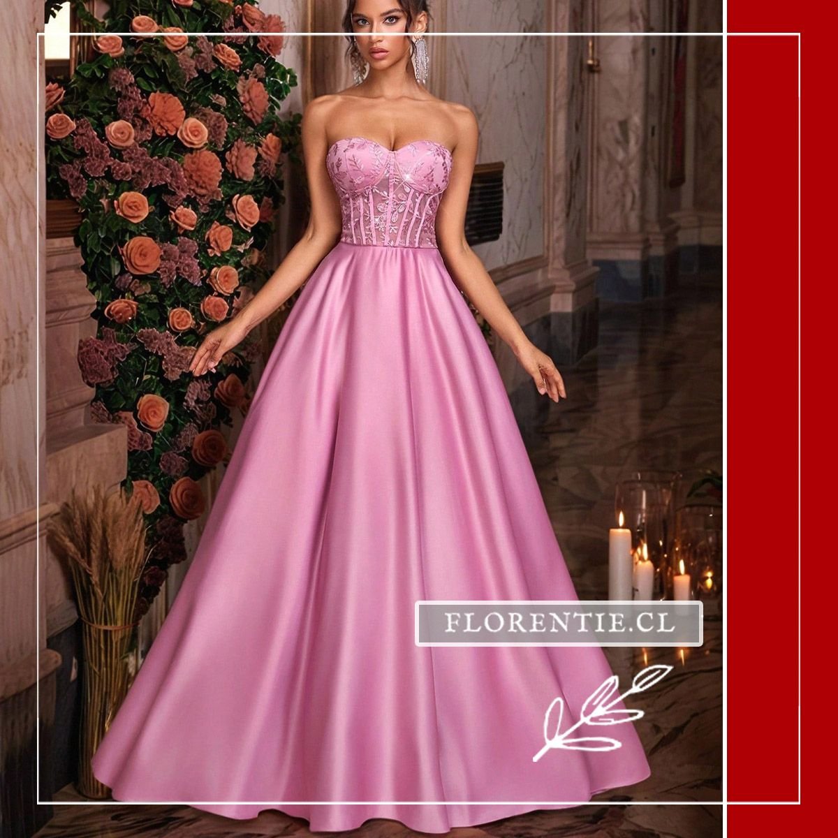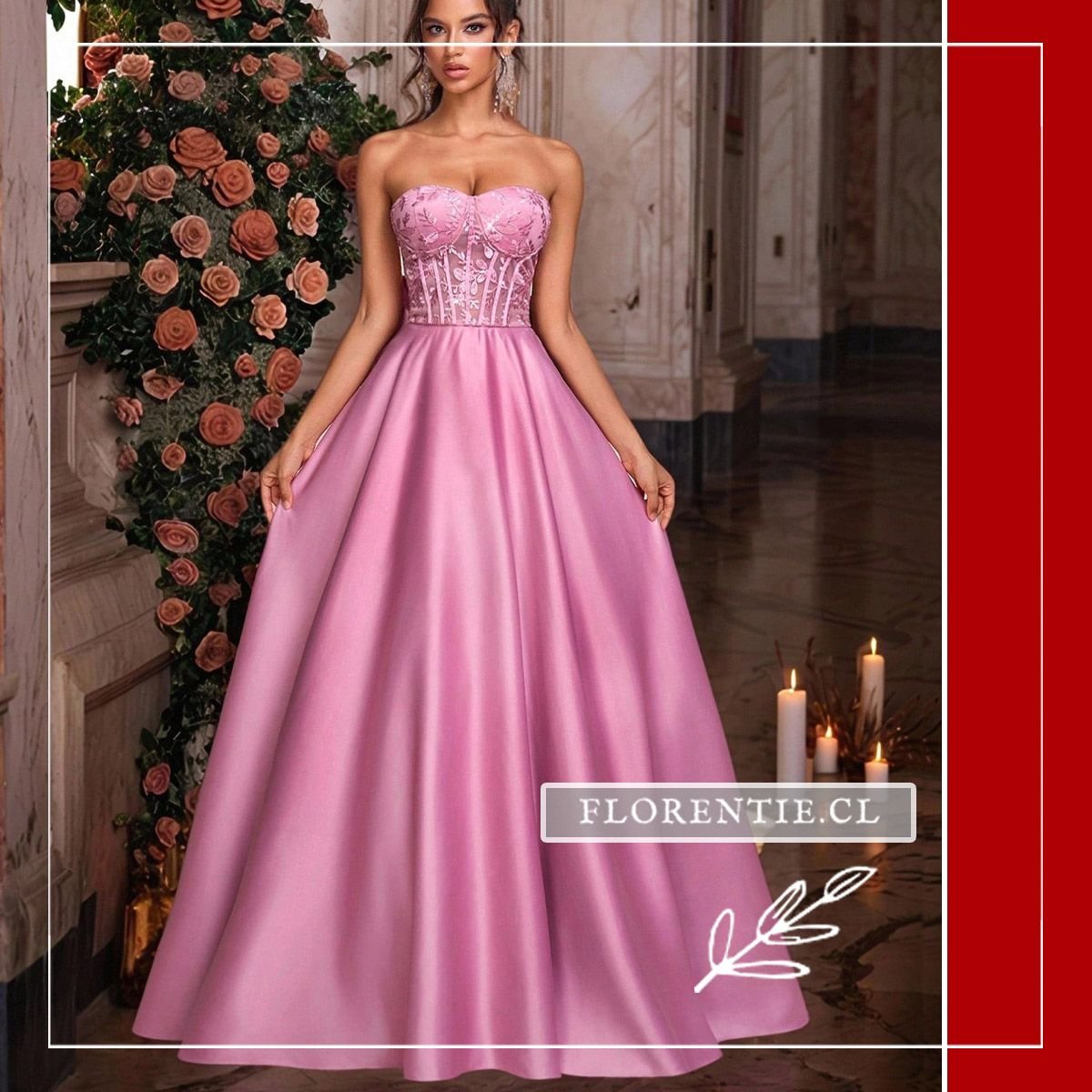 Vestido graduación bonito. Este vestido rosa malva presenta un bustier sin tirantes con bordados florales y una falda de satin con volumen estilo princesa. Su espalda, con cierre de cordones y lazo decorativo, completa un look de cuento. Es perfecto para eventos donde la elegancia formal es protagonista: graduaciones, fiestas de quinceañeras, bailes de gala o bodas de día. Su diseño estructurado y romántico te hará sentir como la protagonista en cualquier celebración inolvidable que requiera un vestido espectacular y glamoroso.