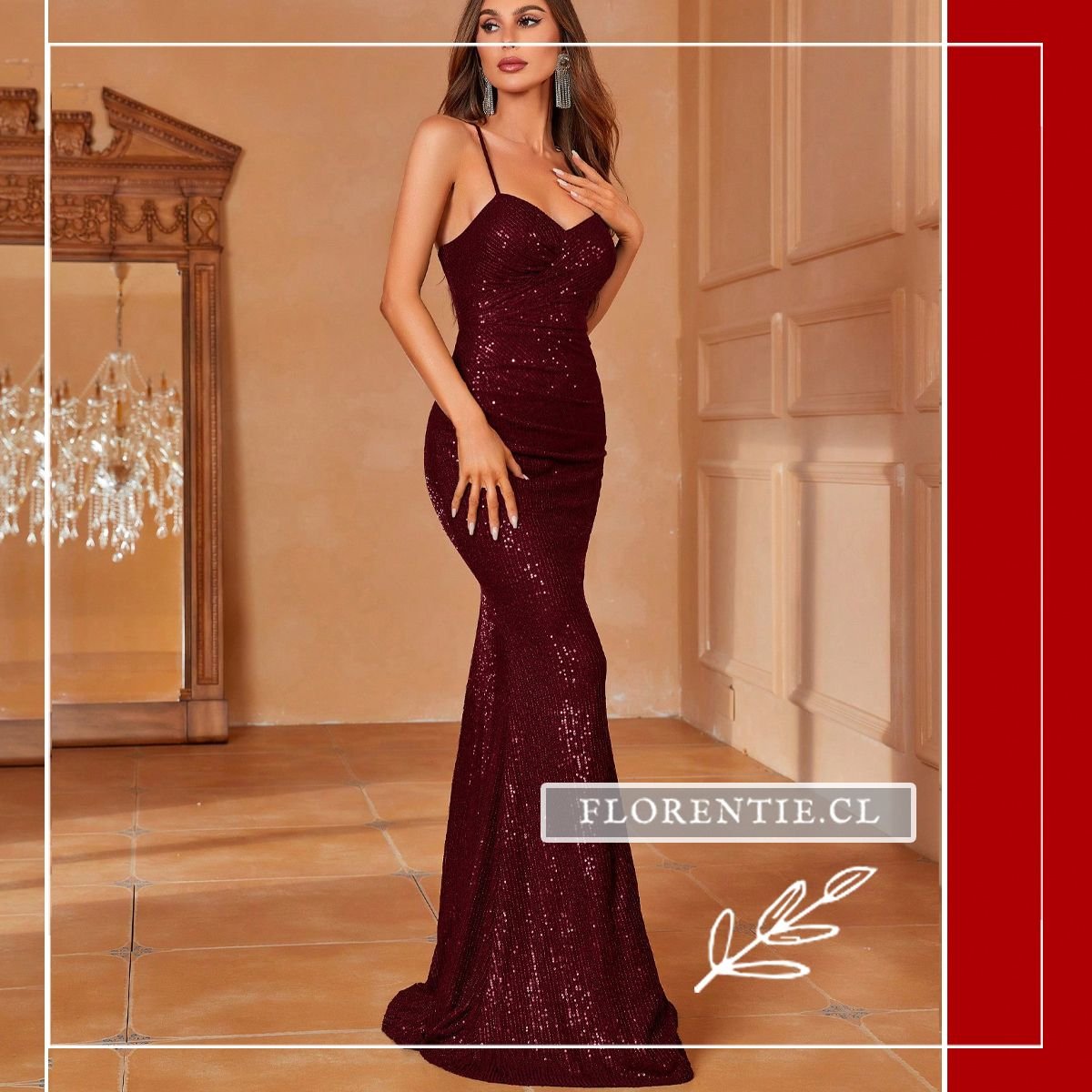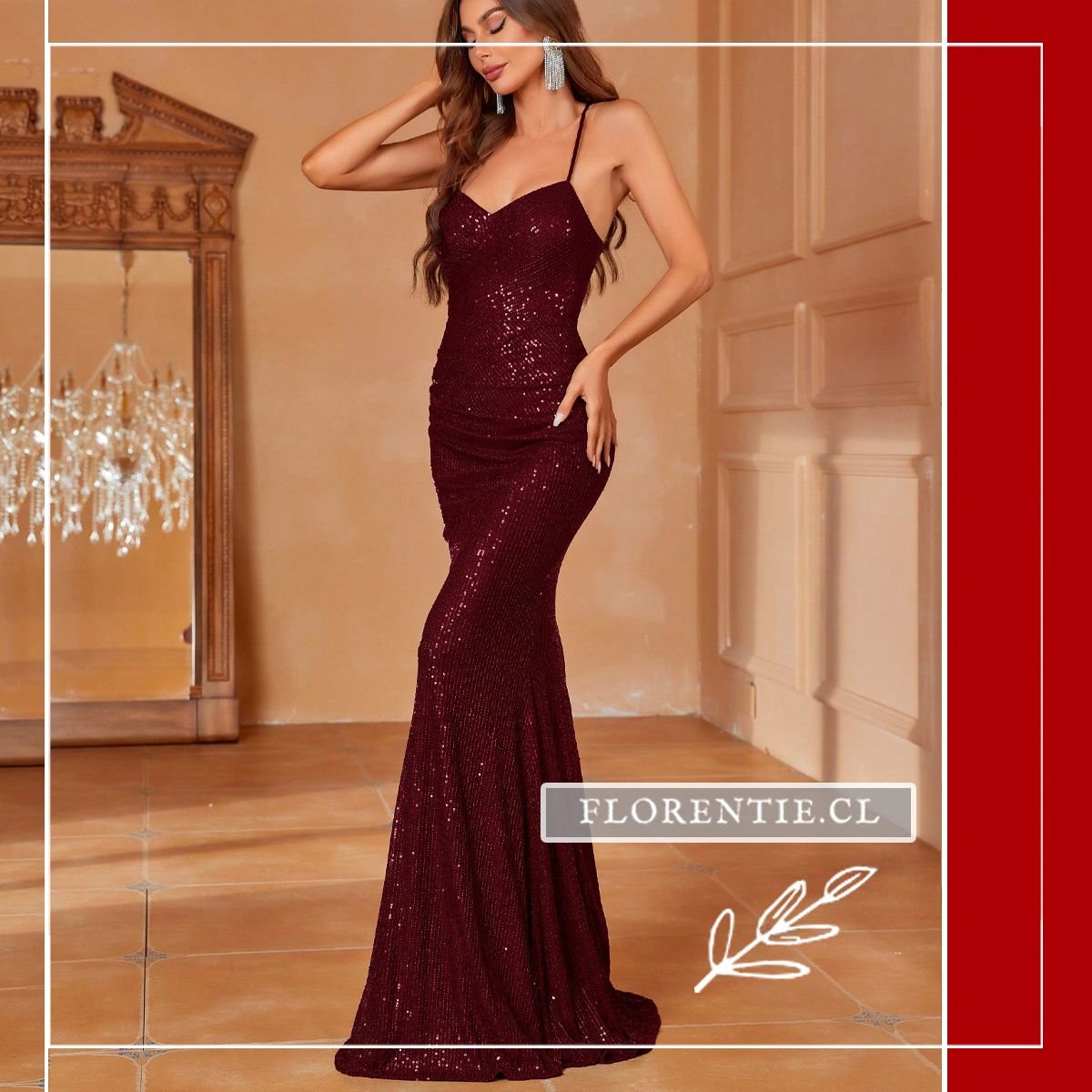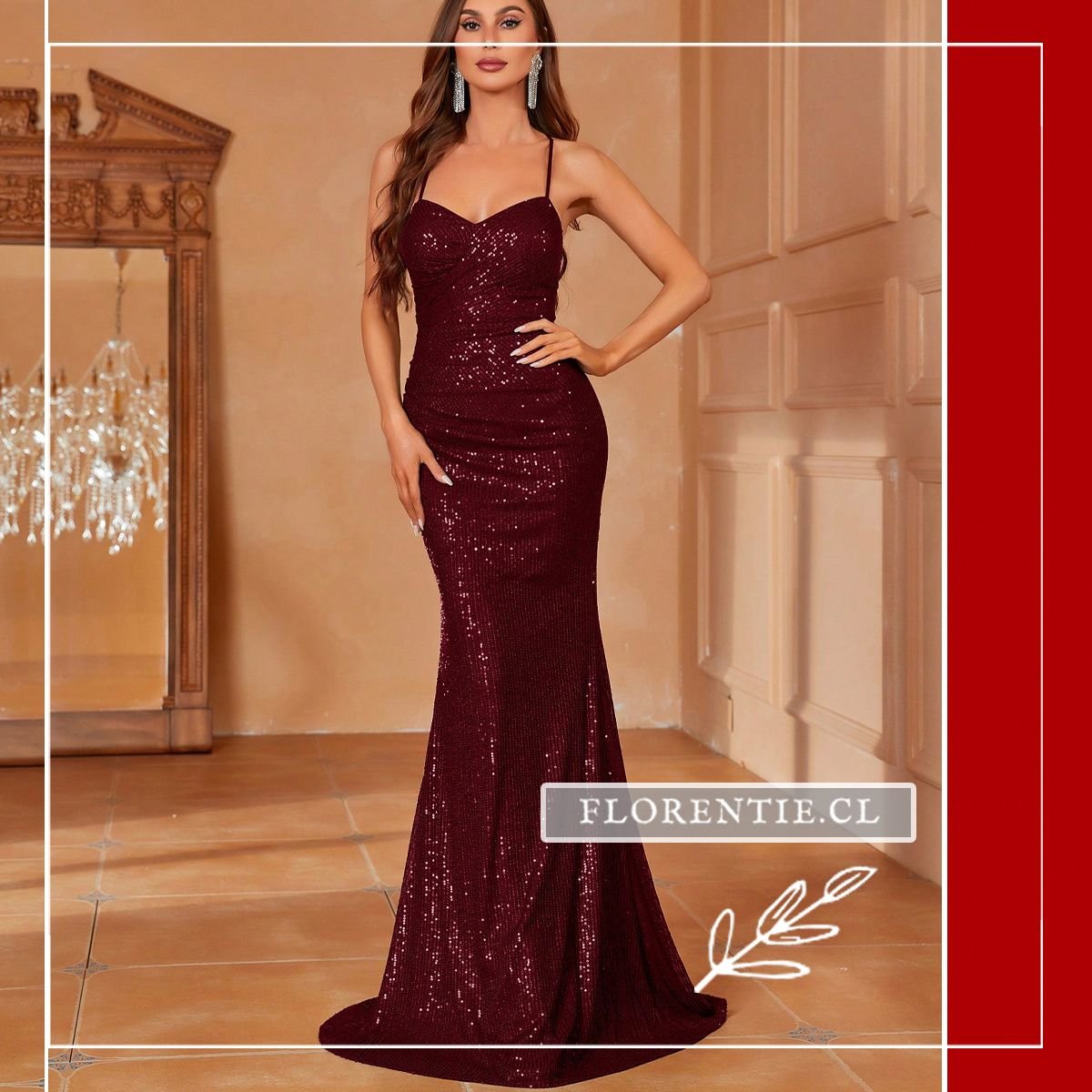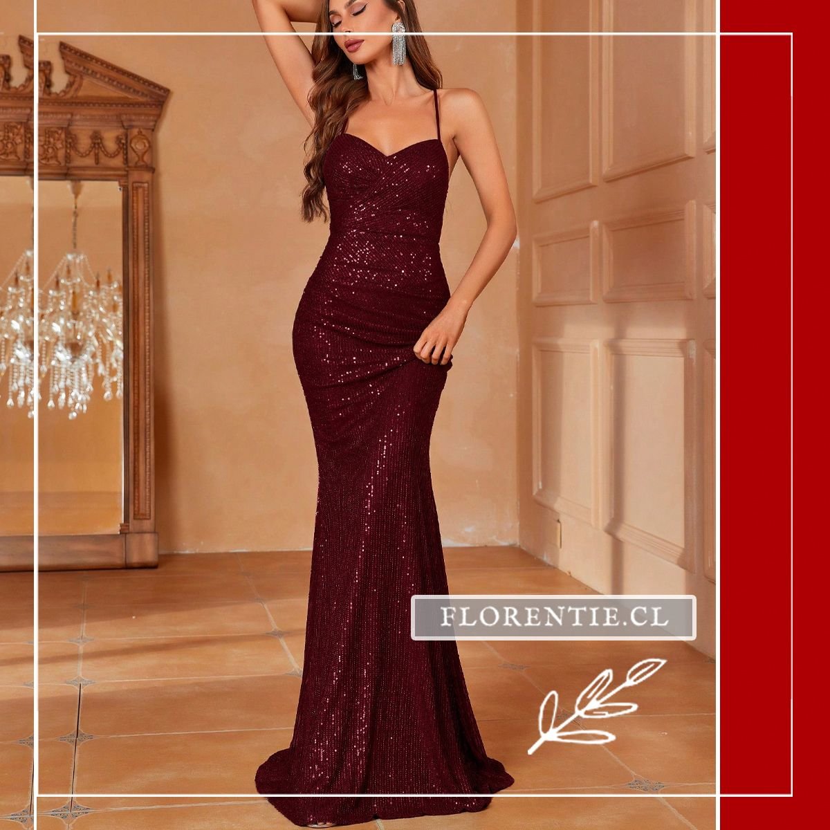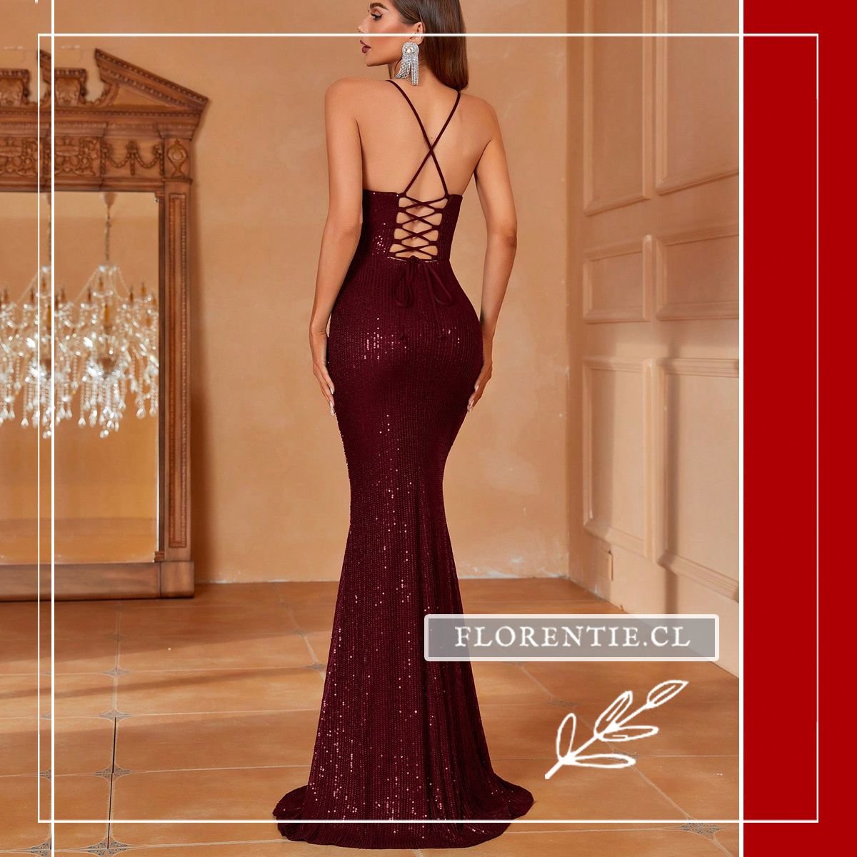 Vestido graduación largo: domina cualquier evento formal con elegancia y estilo. Su diseño te brinda un impacto visual impecable desde todos los ángulos. Este vestido largo en tono vino, confeccionado en tela con lentejuelas, ofrece un brillo glamoroso. Su corte sirena se ajusta al cuerpo y se abre en el bajo, creando una silueta favorecedora. El escote corazón con tirantes delgados y la espalda con cordones estilo corsé aportan un toque sensual y único. Es la elección perfecta para graduaciones, galas, bodas formales o cualquier evento nocturno donde desees lucir impecable y segura, destacando con sofisticación.