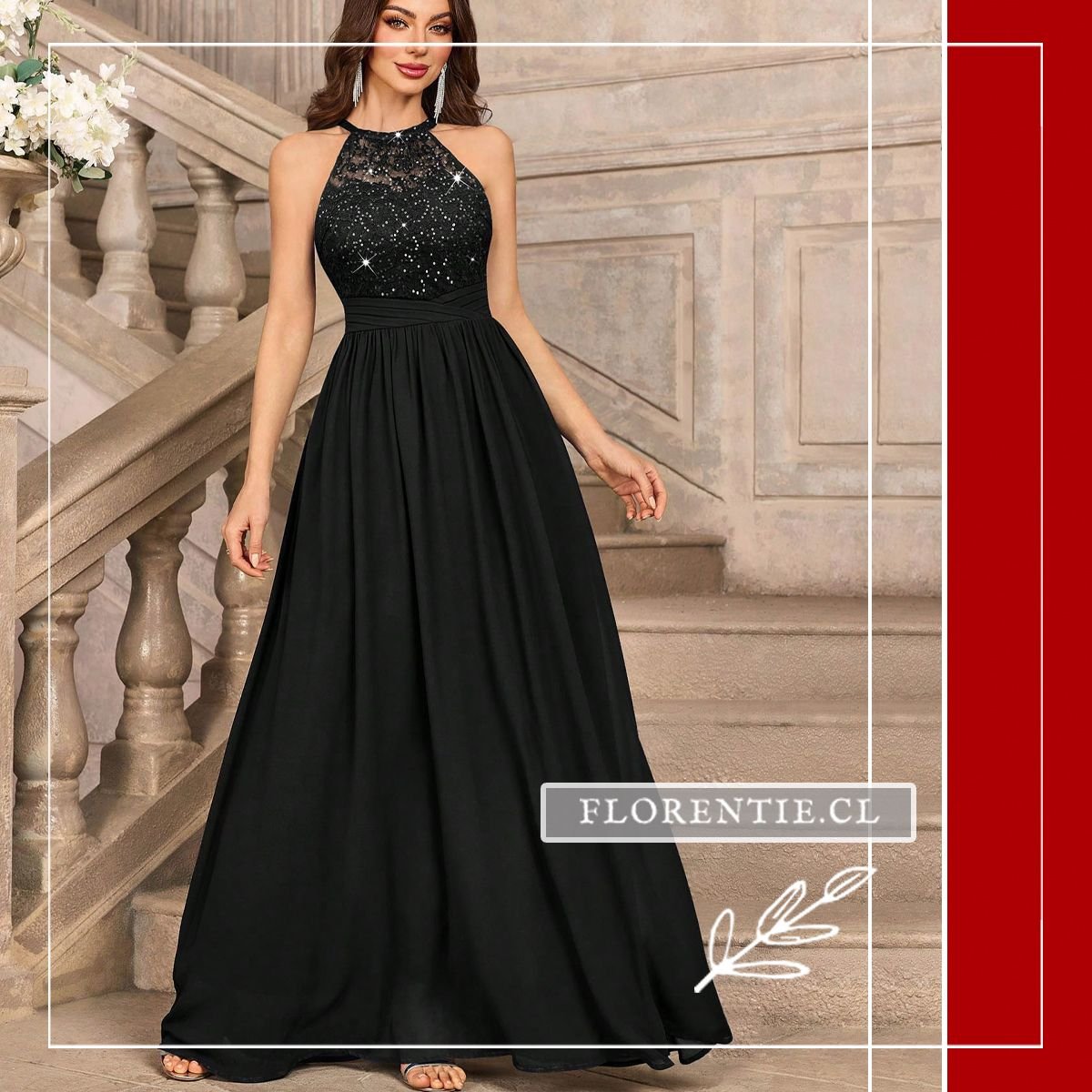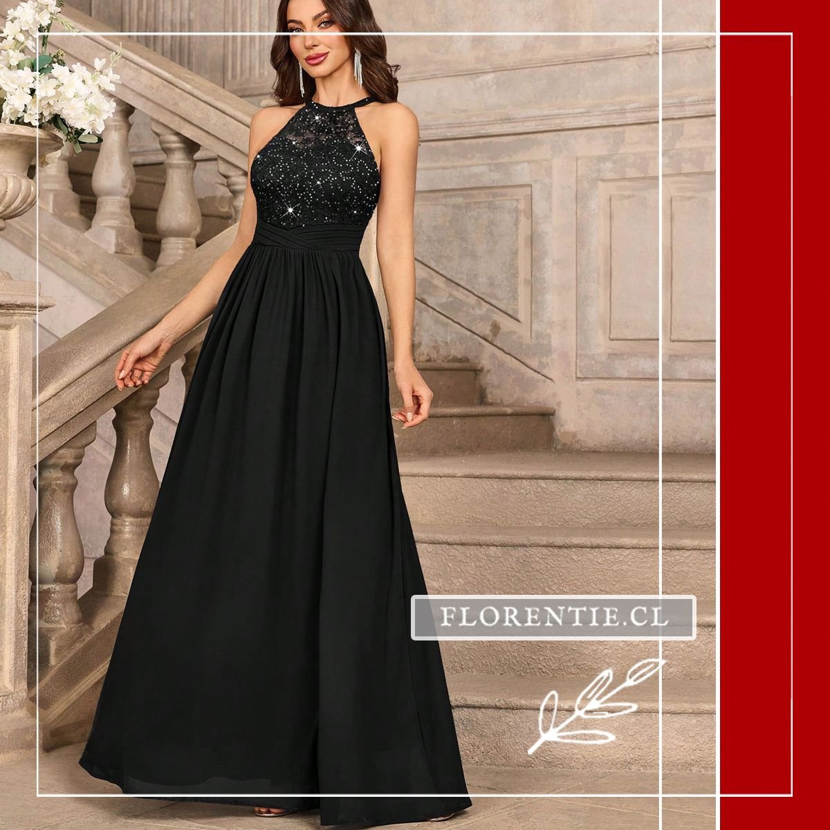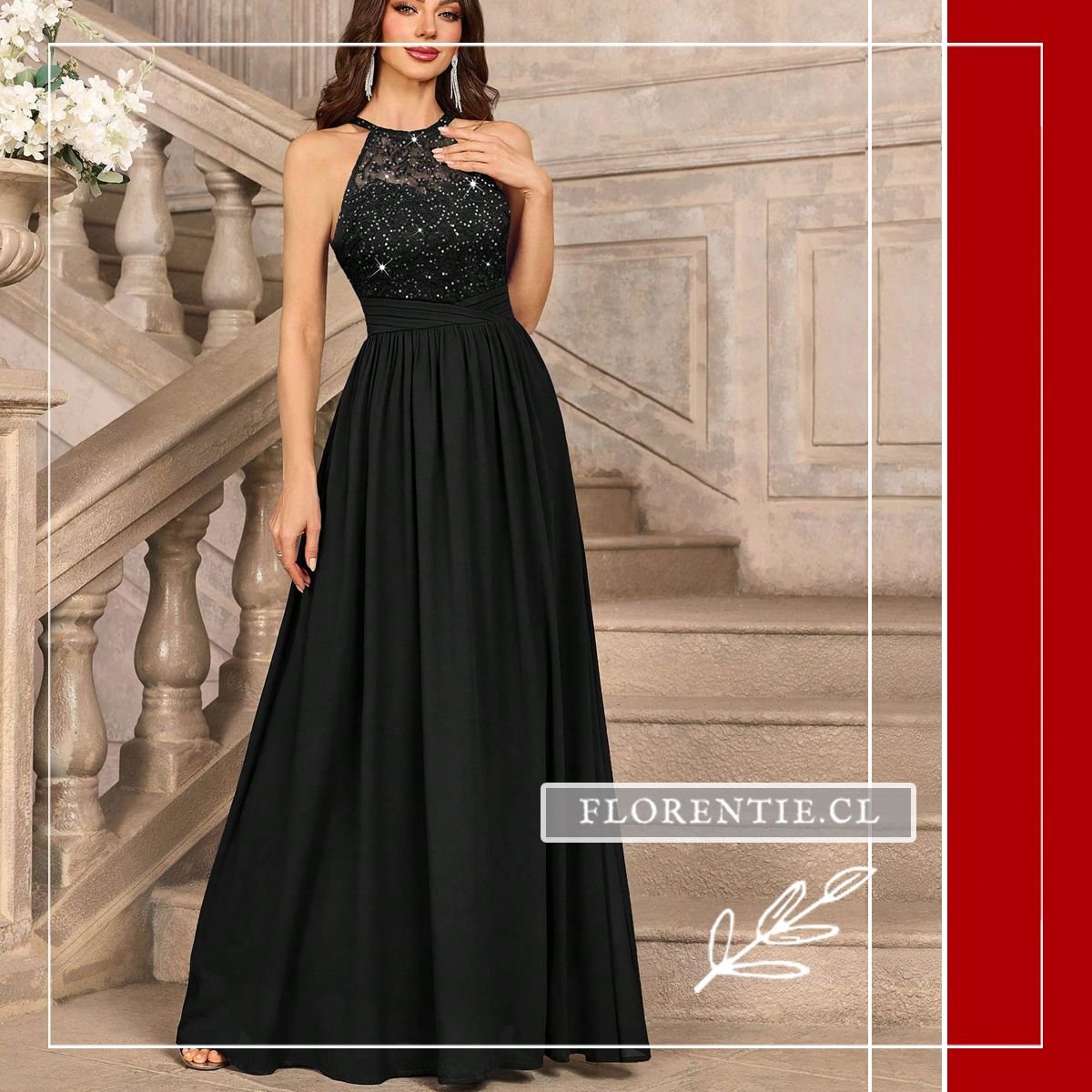 Su escote halter con cuello alto y espalda abierta ofrece un look atrevido, mientras que el fajín define tu cintura. La falda larga tipo A-line en gasa asegura elegancia y comodidad en el movimiento. Perfecto para galas de premios, bodas de etiqueta, cócteles de gala, cenas benéficas o cualquier evento nocturno que requiera un impacto seguro y sofisticado. Un vestido que te hará sentir poderosa y elegante durante toda la noche.