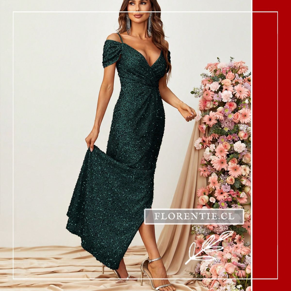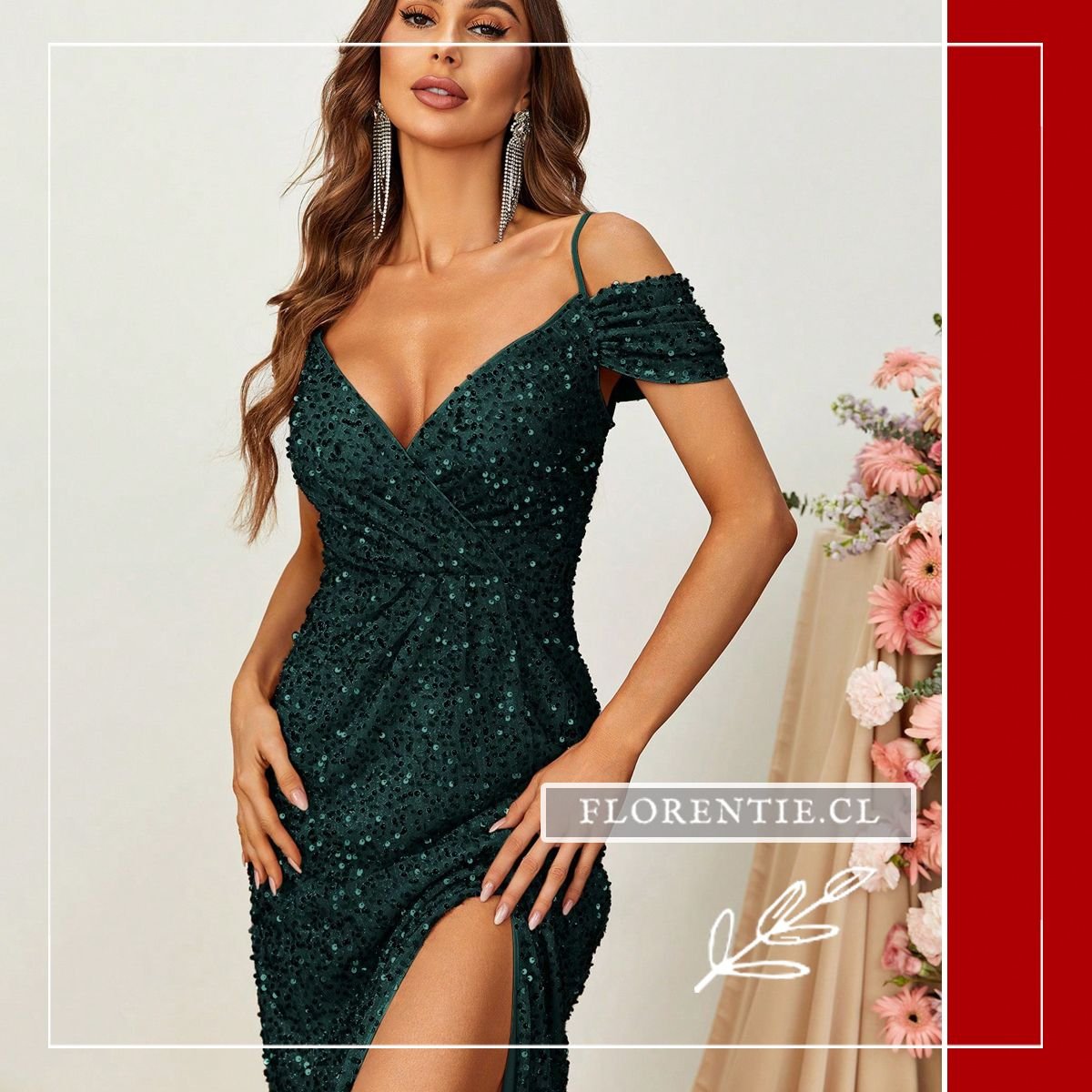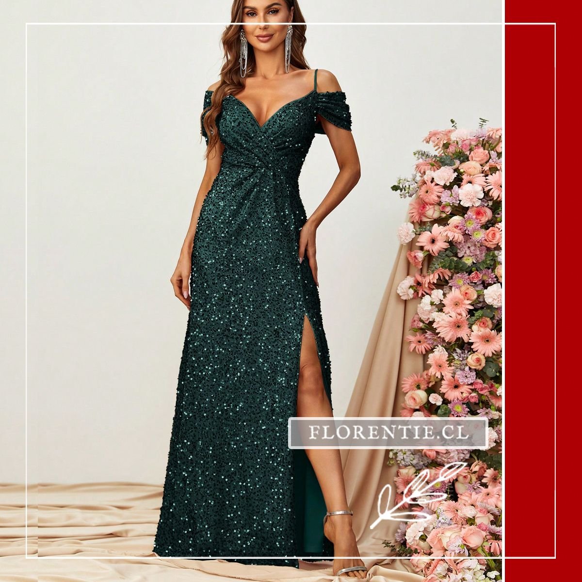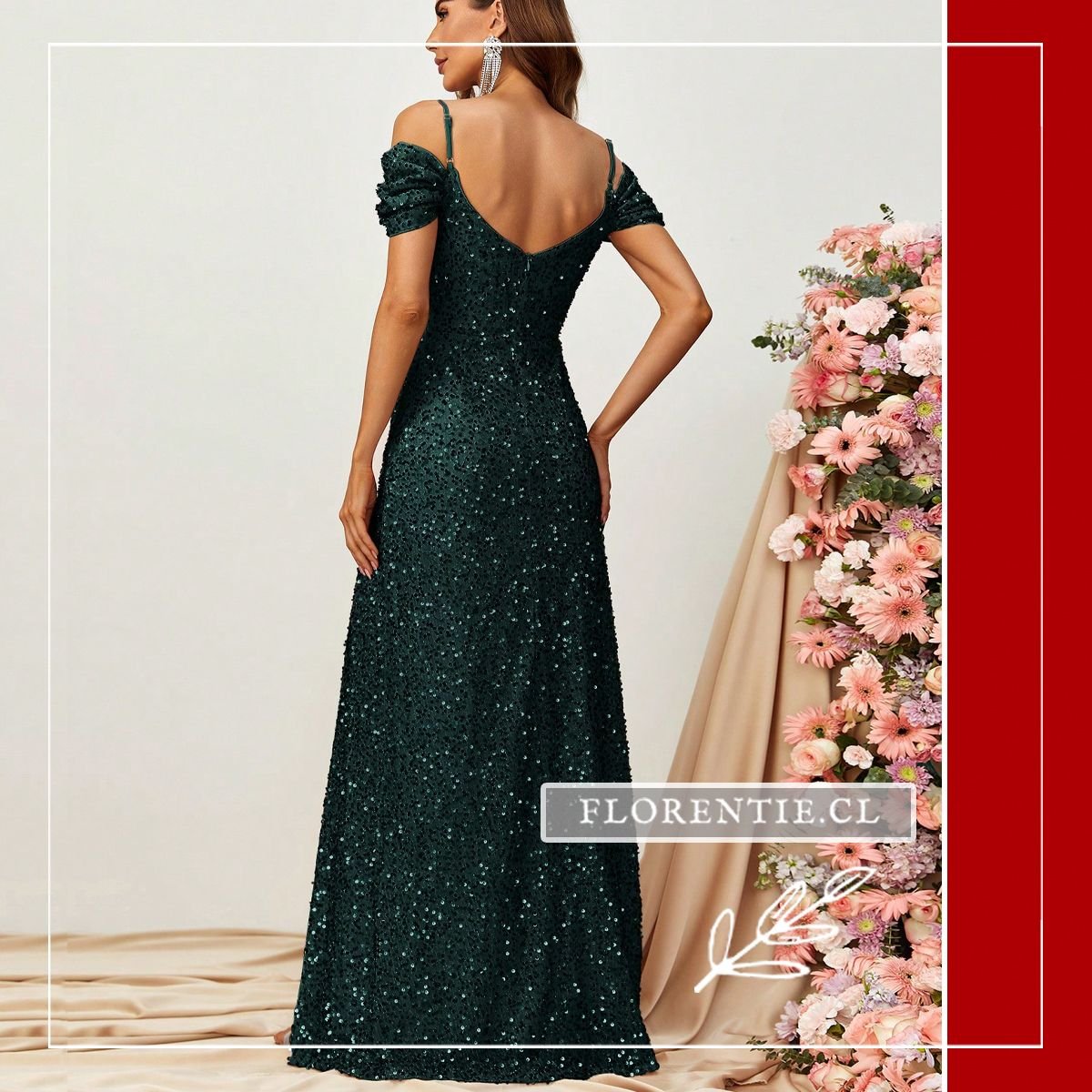 Este deslumbrante modelo en verde esmeralda es la elección definitiva para quienes buscan destacar con un brillo sofisticado en cualquier evento de gala. Su diseño presenta un favorecedor escote en V y una silueta tipo sirena que realza las curvas con maestría, mientras que los tirantes off-shoulder aportan una elegancia romántica e irresistible. Cubierto totalmente de lentejuelas, este vestido captura la luz de forma espectacular, asegurando una presencia impactante en bodas, alfombras rojas o cenas de lujo. La abertura lateral pronunciada añade el toque moderno y audaz necesario para caminar con total seguridad y estilo.
