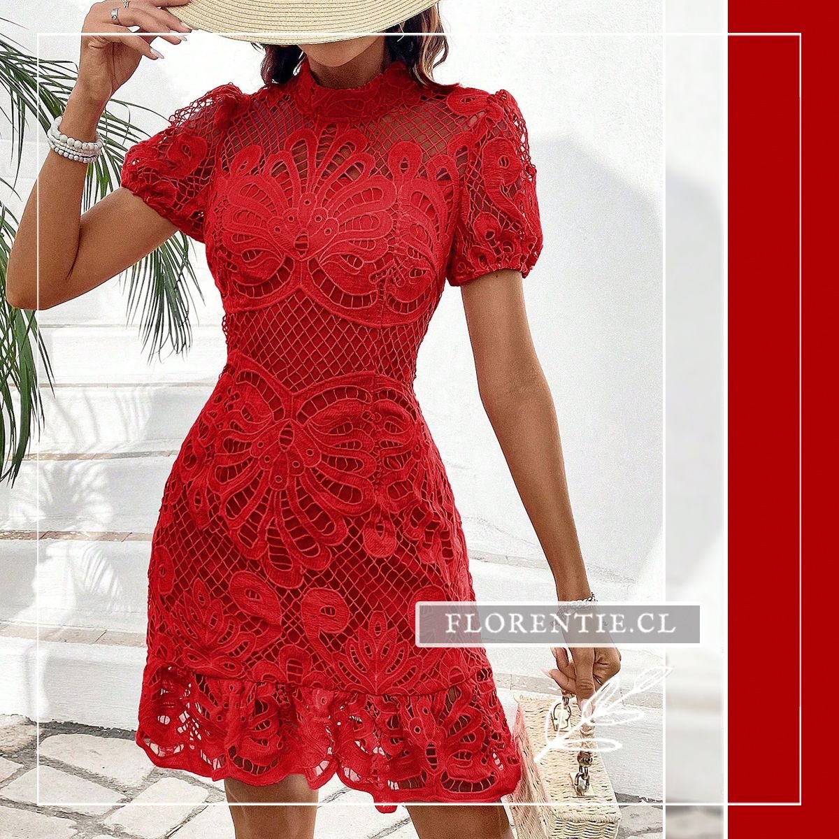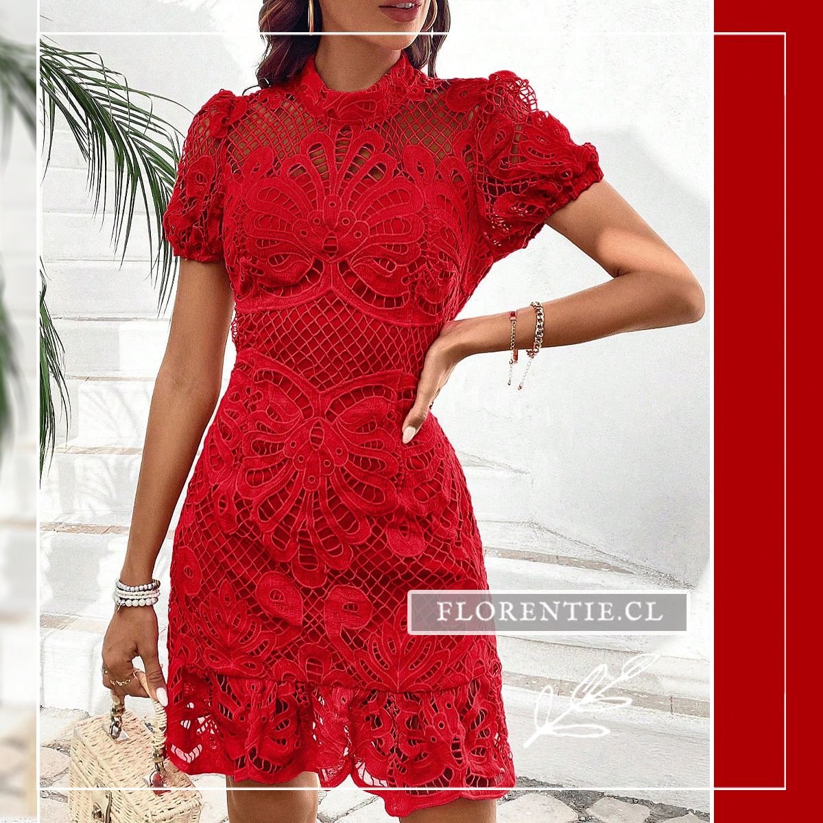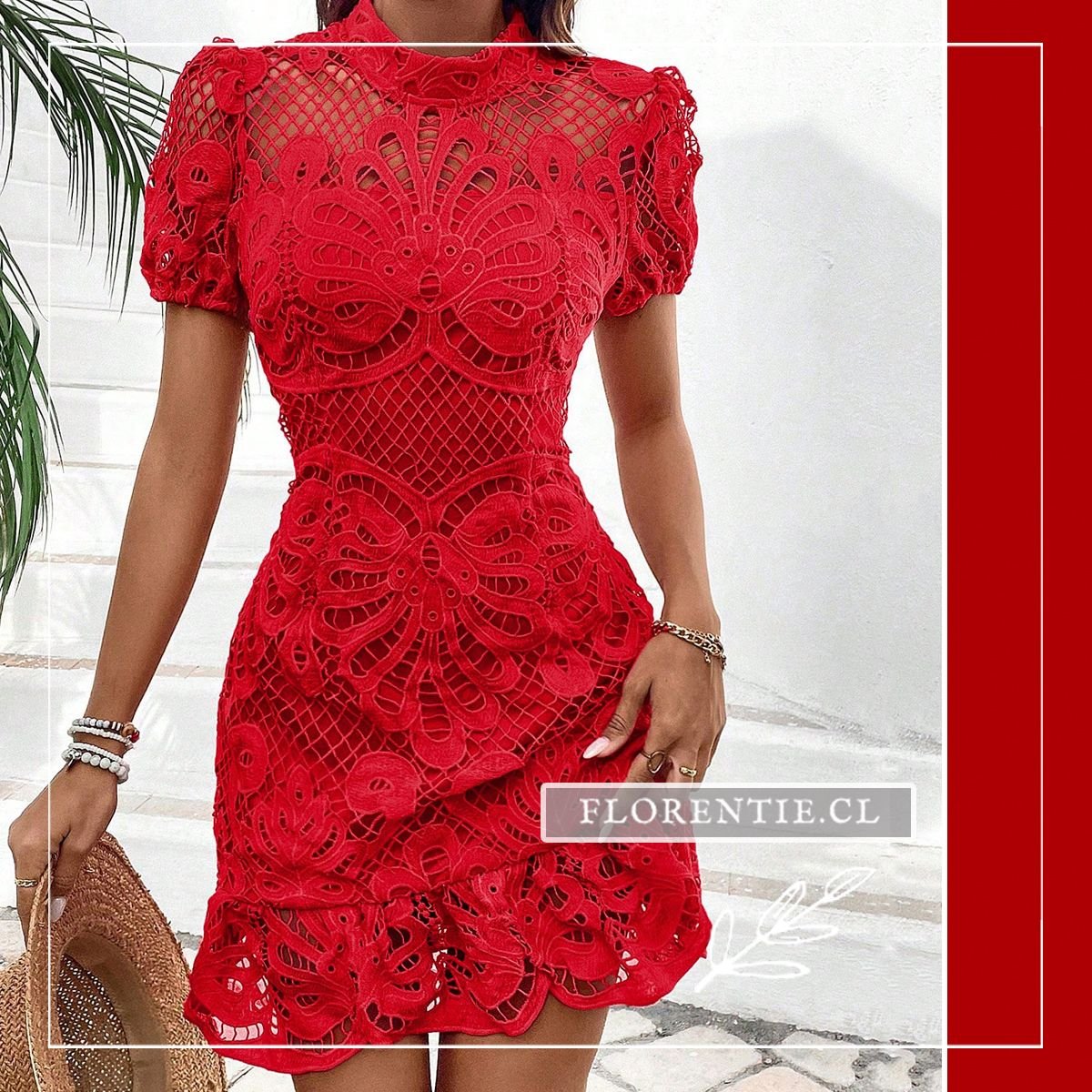 El vestido rojo de encaje Aurora es la opción definitiva para eventos donde el detalle sofisticado y el diseño favorecedor marcan la diferencia. Su silueta ajustada con cuello alto realza la figura con elegancia, mientras que el tejido tipo guipur con motivos florales aporta una textura artesanal de gran impacto visual. Las mangas abullonadas y la falda corta con volante añaden un aire femenino y moderno, ideal para cenas de aniversario, compromisos o celebraciones navideñas. Es una prenda que combina maestría técnica y estilo atrevido para garantizar una presencia inolvidable en cualquier cita especial.