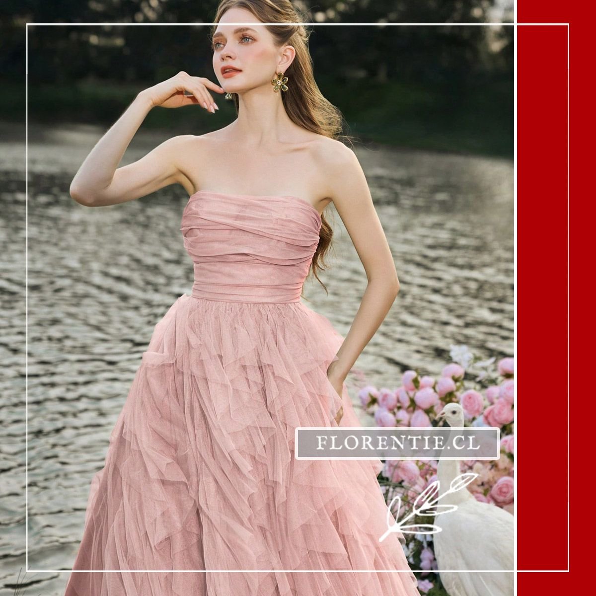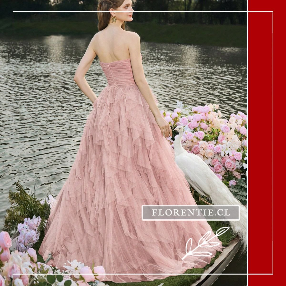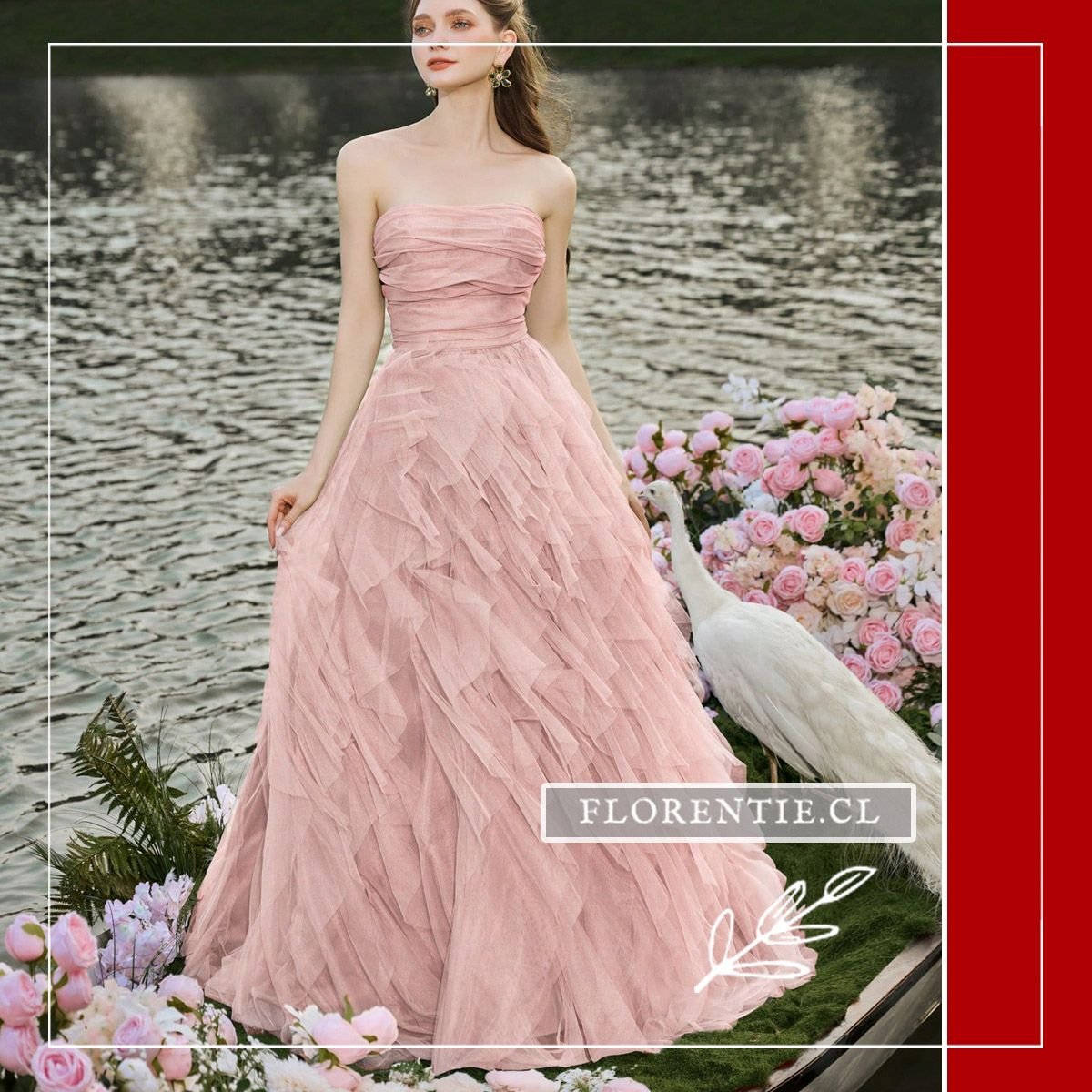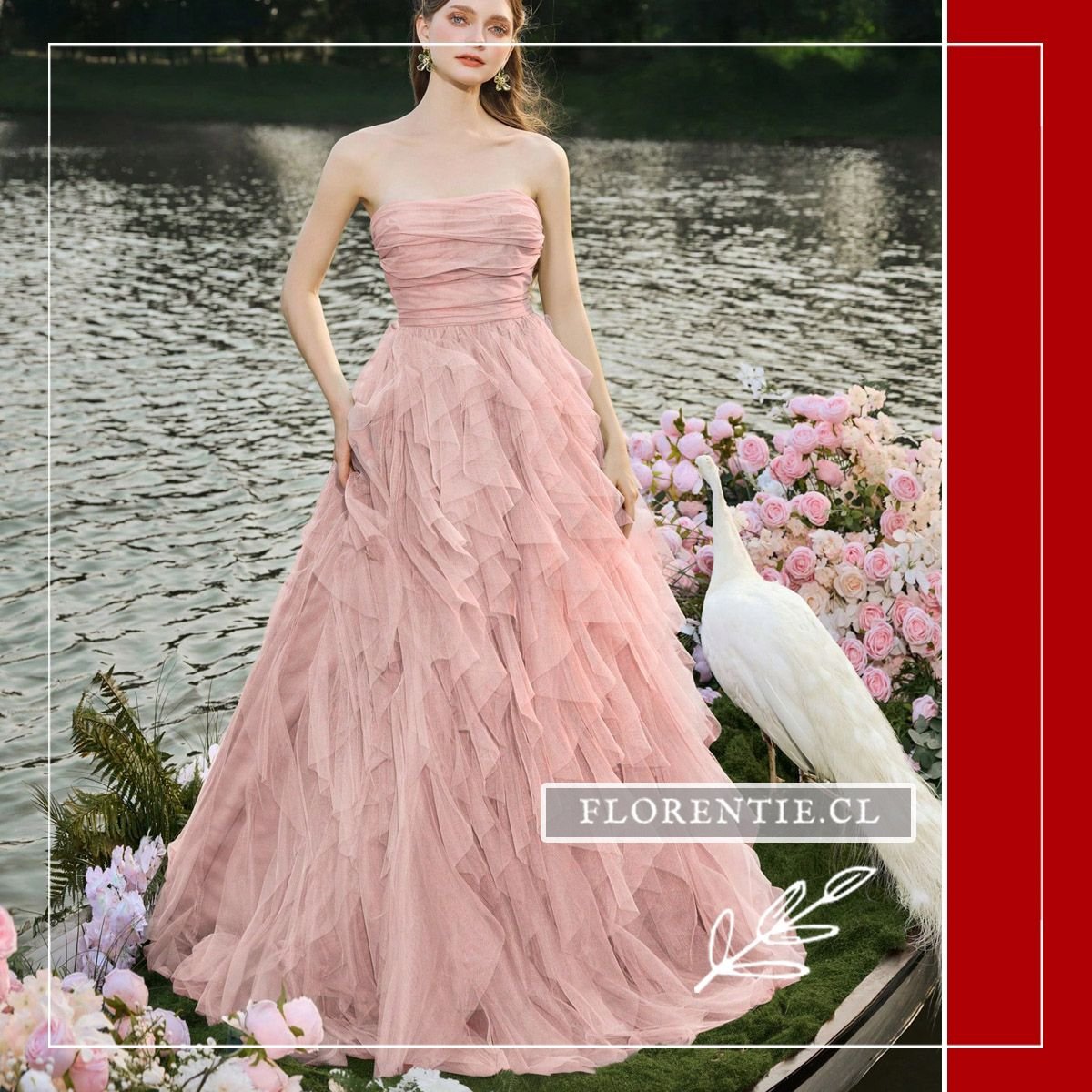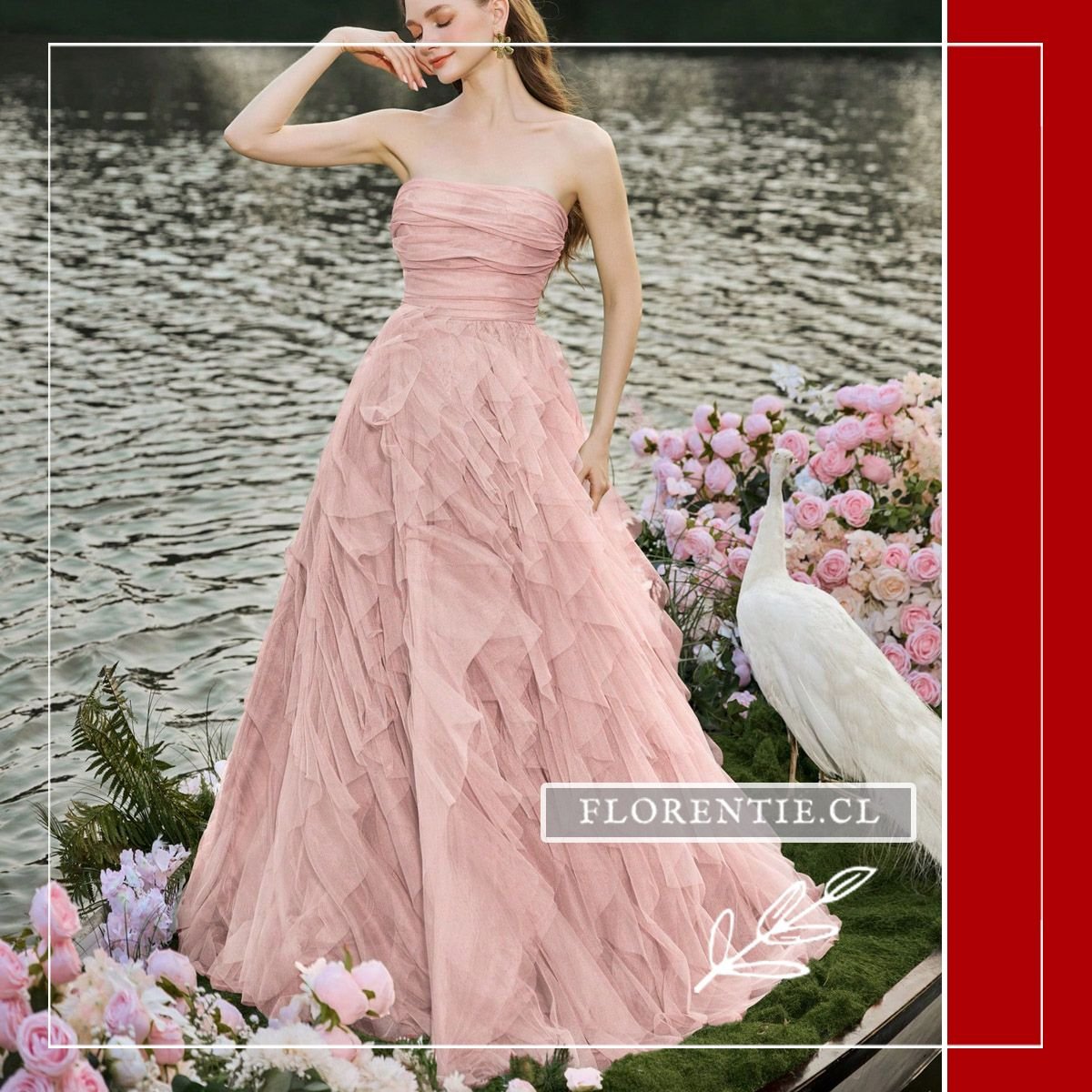 Vestido rosado Amparo: elegancia y romanticismo se fusionan para crear tu look de gala soñado. Este vestido largo en tono dusty rose presenta un diseño strapless con corpiño de pliegues drapeados que aportan textura y soporte. Su falda voluminosa tipo “ball gown”, confeccionada en múltiples capas de tul, crea un efecto etéreo y lleno de movimiento. Ideal para bodas, galas o eventos formales, este vestido ofrece un equilibrio perfecto entre la elegancia clásica y un aire romántico contemporáneo.