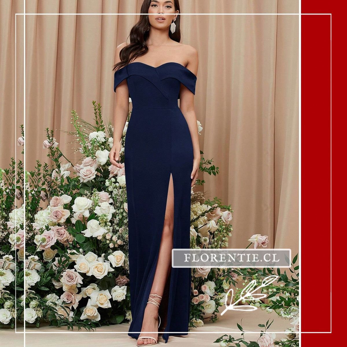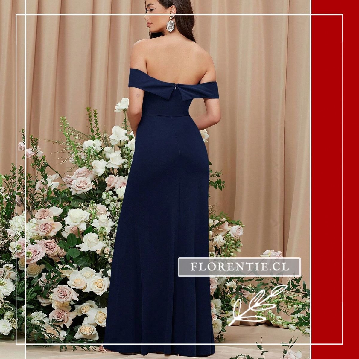 Vestido verano palabra de honor, consigue un look sofisticado y sensual con este vestido de gala en azul marino, ideal para las noches de verano. Su diseño fuera del hombro y escote corazón enmarca el torso de manera elegante. La silueta entallada marca tu cintura y fluye hacia una falda larga con una abertura lateral pronunciada. Confeccionado en una tela de caída fluida, es perfecto para una boda, una gala, una cena de aniversario o cualquier evento formal donde quieras lucir un estilo impecable y moderno.